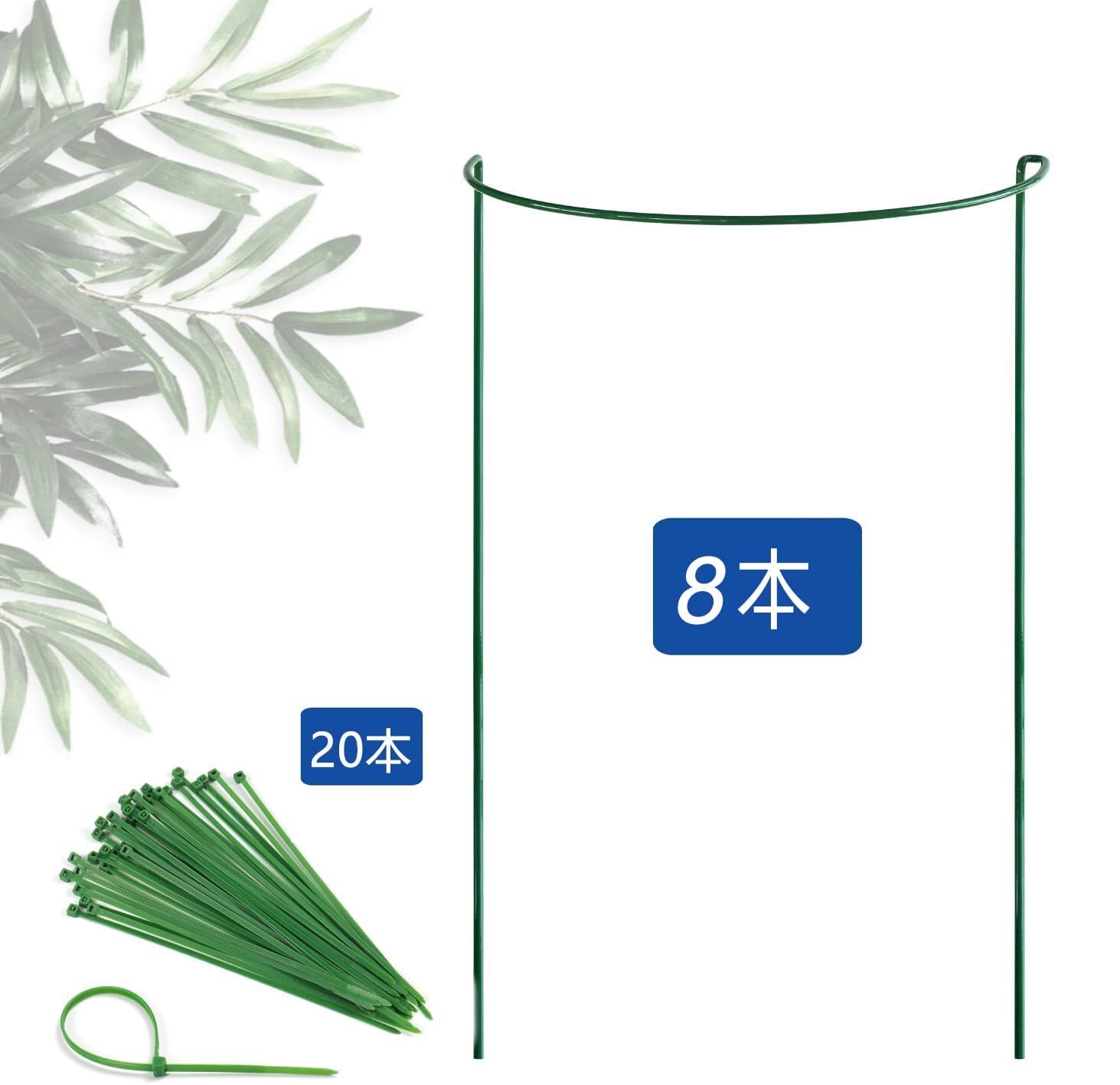 【便利セット】:合計8個の植物支柱+20個の園芸用結束バンド。