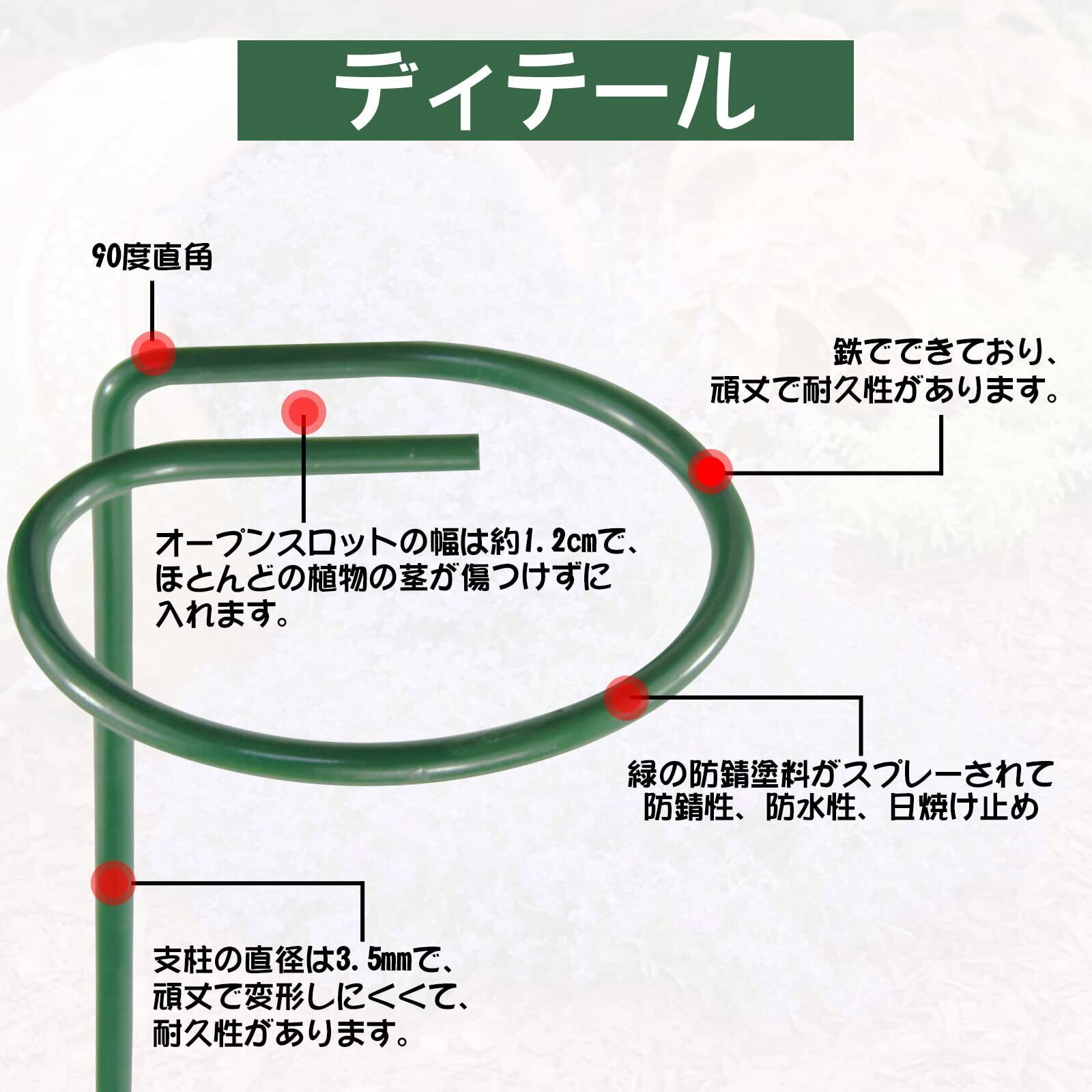 【高品質】 鉄でできており、緑の防錆塗料がスプレーされています。頑丈で変形しにくく、しっかりと立っていて、植物をよくサポートします。 再利用可能で耐久性、防錆性があります。
