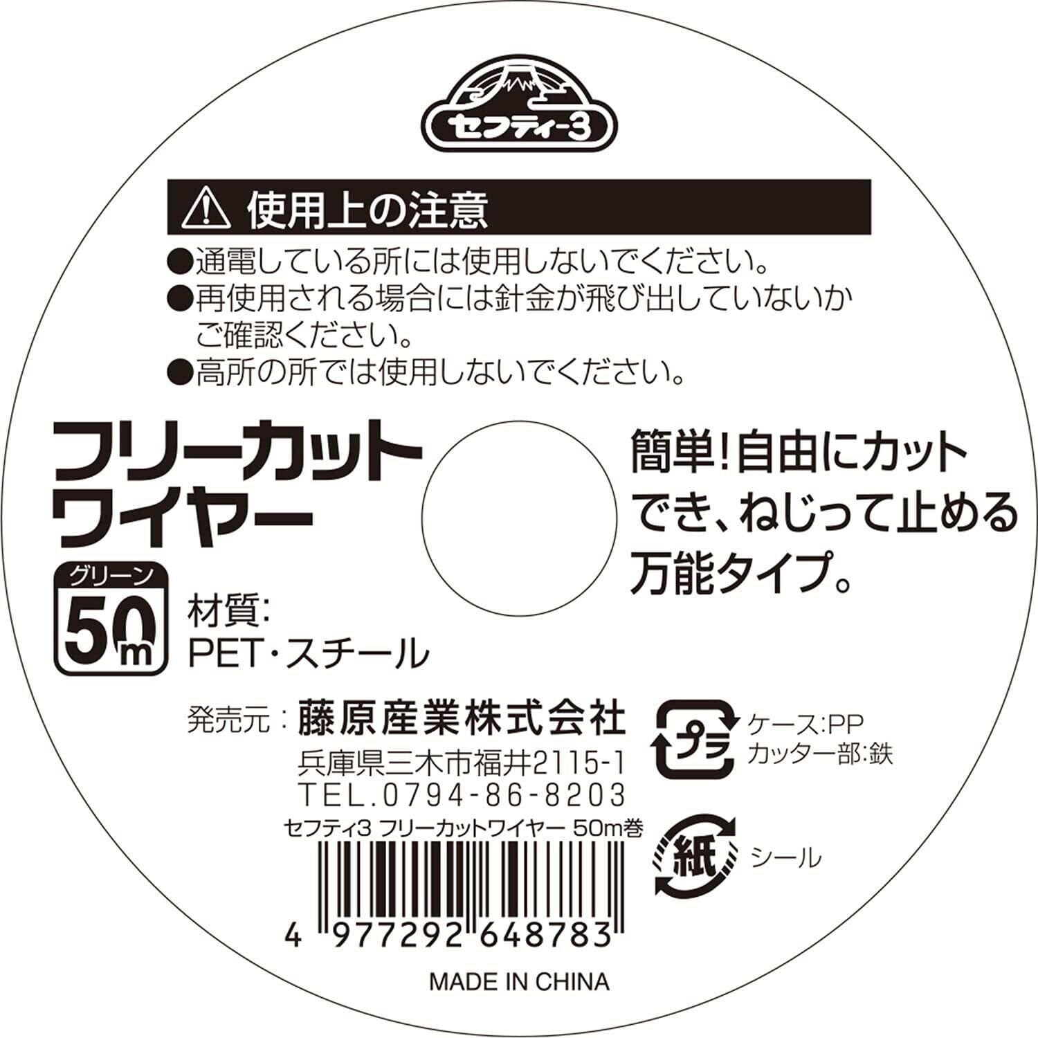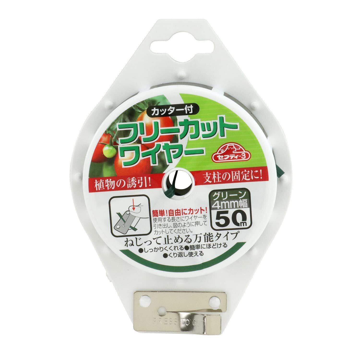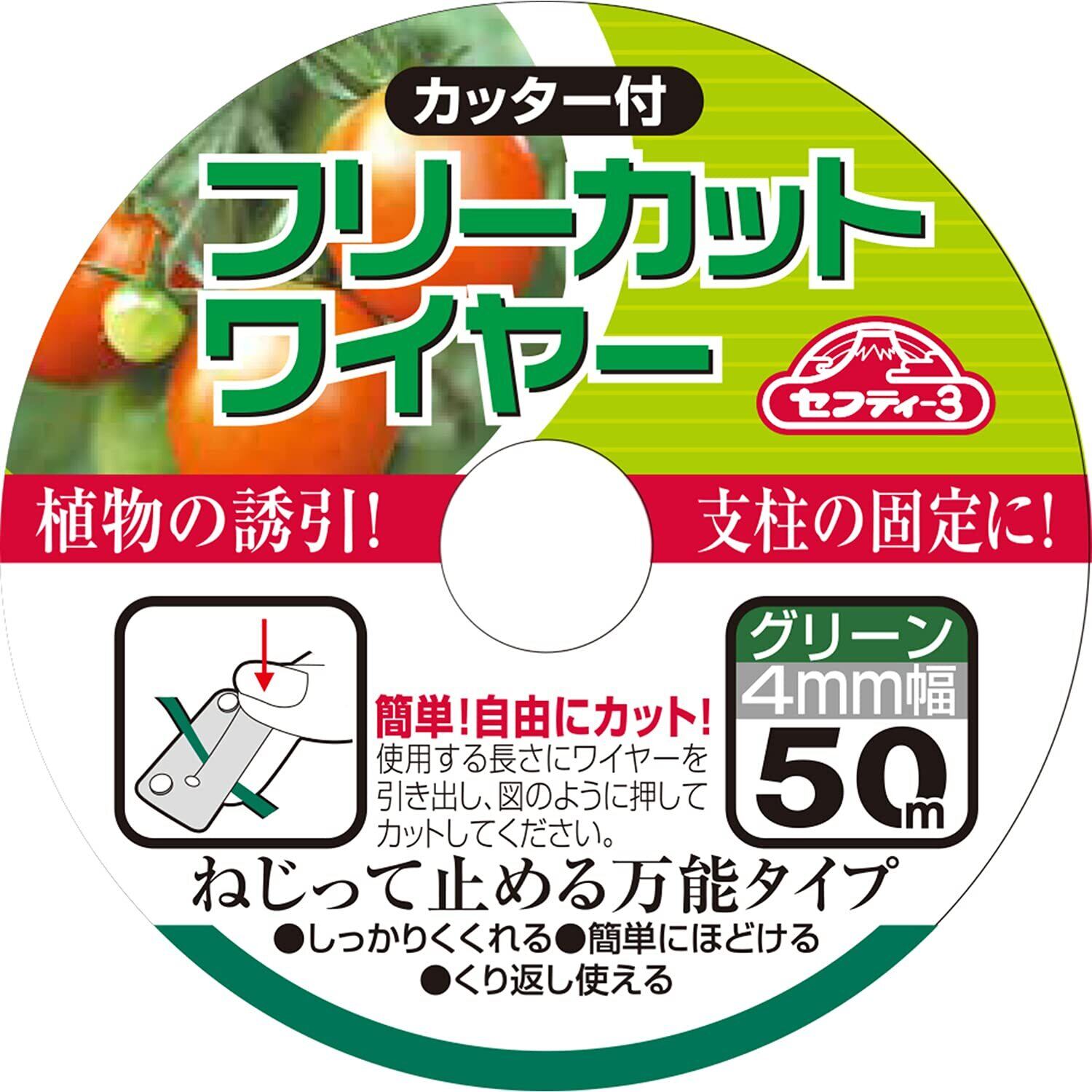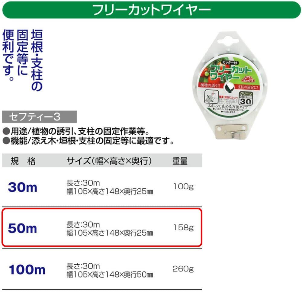 セフティー3(Safety-3) ガーデンフリーカットワイヤー グリーン 垣根・支柱の固定等に 50m