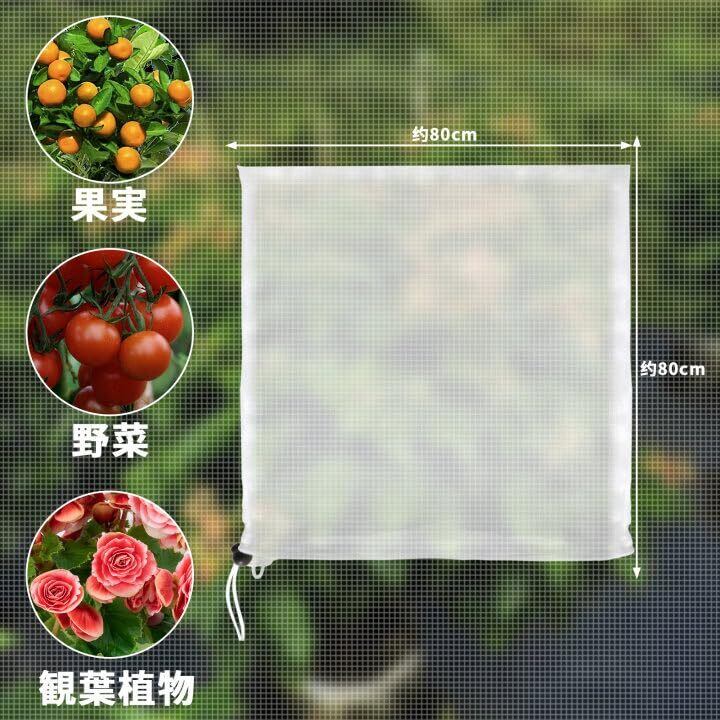 Neiang 植物保護カバー 防虫ネット プランター 1個 ファスナー付き 巾着式 目合1mm 水やり可能 防虫カバー 野菜栽培 鳩よけネット 虫除け 鳥よけネット 家庭菜園 80×80cm | KSショップ