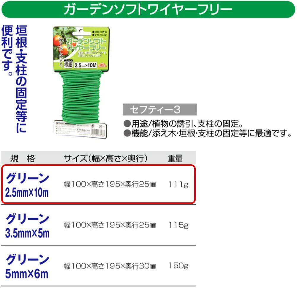 セフティー3(Safety-3) ガーデンソフトワイヤーフリー グリーン 2.5mm×10m