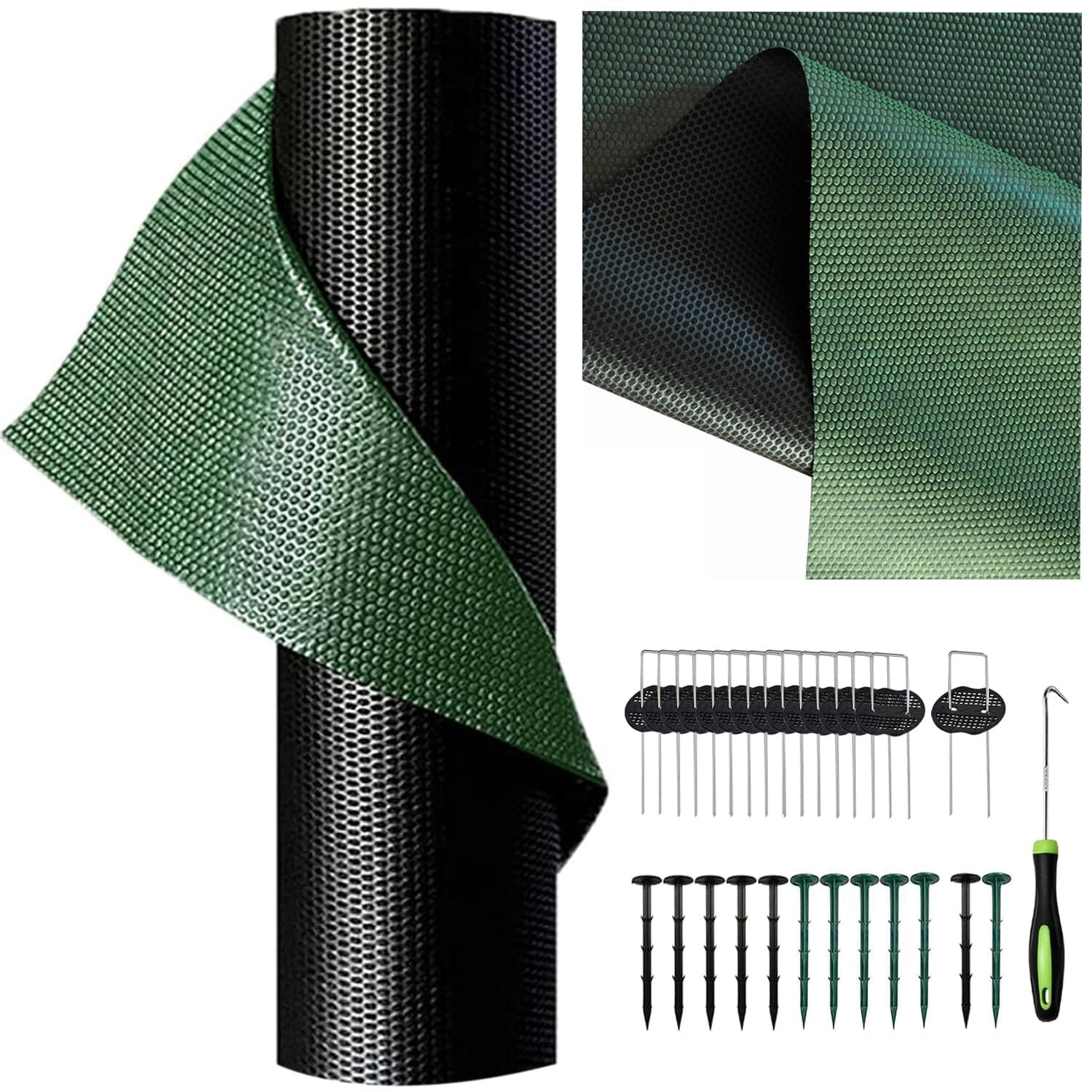 2025年新登場【緑黒両面】防草シート 0.8*10m 除草シート 130g/m²高密度 12年耐久 グリーン 黒両面使い トウモロコシ繊維 PLA製 丸穴設計 高耐久 高透水 厚手不織布シート 草よけシート UV剤入り 雑草防止 紫外線劣化防止 園芸用ぼうそうしーと スチール製Uピン杭15本と黒丸15枚付き (幅0.8mを幅0.4mに折り畳んだロールで出荷) | KSショップ