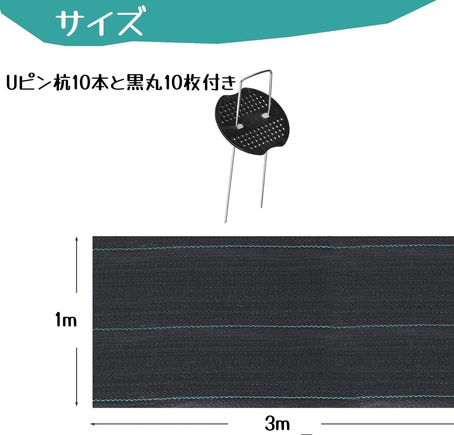MUYYIKA 防草シート 除草シート ぼうそうシート 高透水性 高耐久性 高い遮光性 高密度 園芸用シート Uピン杭10本と黒丸10枚付き 園芸用 農業 工事用 庭 通路など雑草防止 (1x3m) | KSショップ