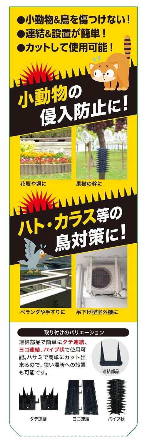 ・ネコや小動物の歩行する場所や侵入経路に並べることで、建物・敷地へのを防ぐ効果がある