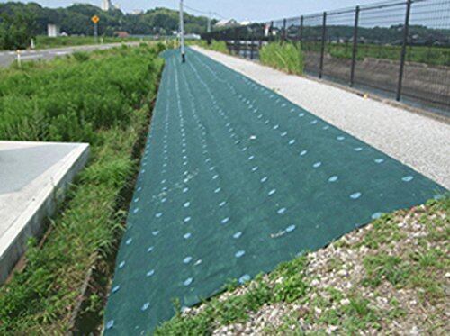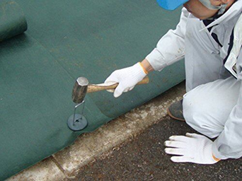 ピン固定部の保護、固定力向上として、また、ピンホール部を覆い締め付ける事により雑草を抑制し、シートの破断や破れ等を防止することができ、防草シート本来の抑制効果を維持する事ができます。