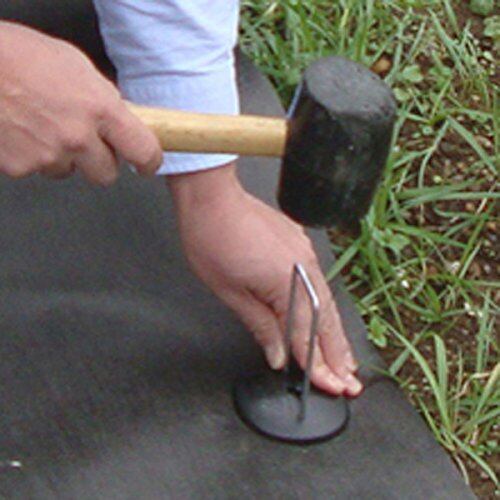 防草ワッシャーは、お使いの防草シートに合わせたカラーをお選びいただけます。 防草ワッシャーには中央部に3つの窪みがあり、コ型の固定ピンを両サイドの穴に差込みハンマーで叩き込むことで防草シートを固定します。防草ワッシャーは80mmの直径があり、シートを押し付けるため、シートのバタつきを防止し固定力をアップさせます。 ピンを打ち込む間隔は、50cm~100cmずつを目安としてください。