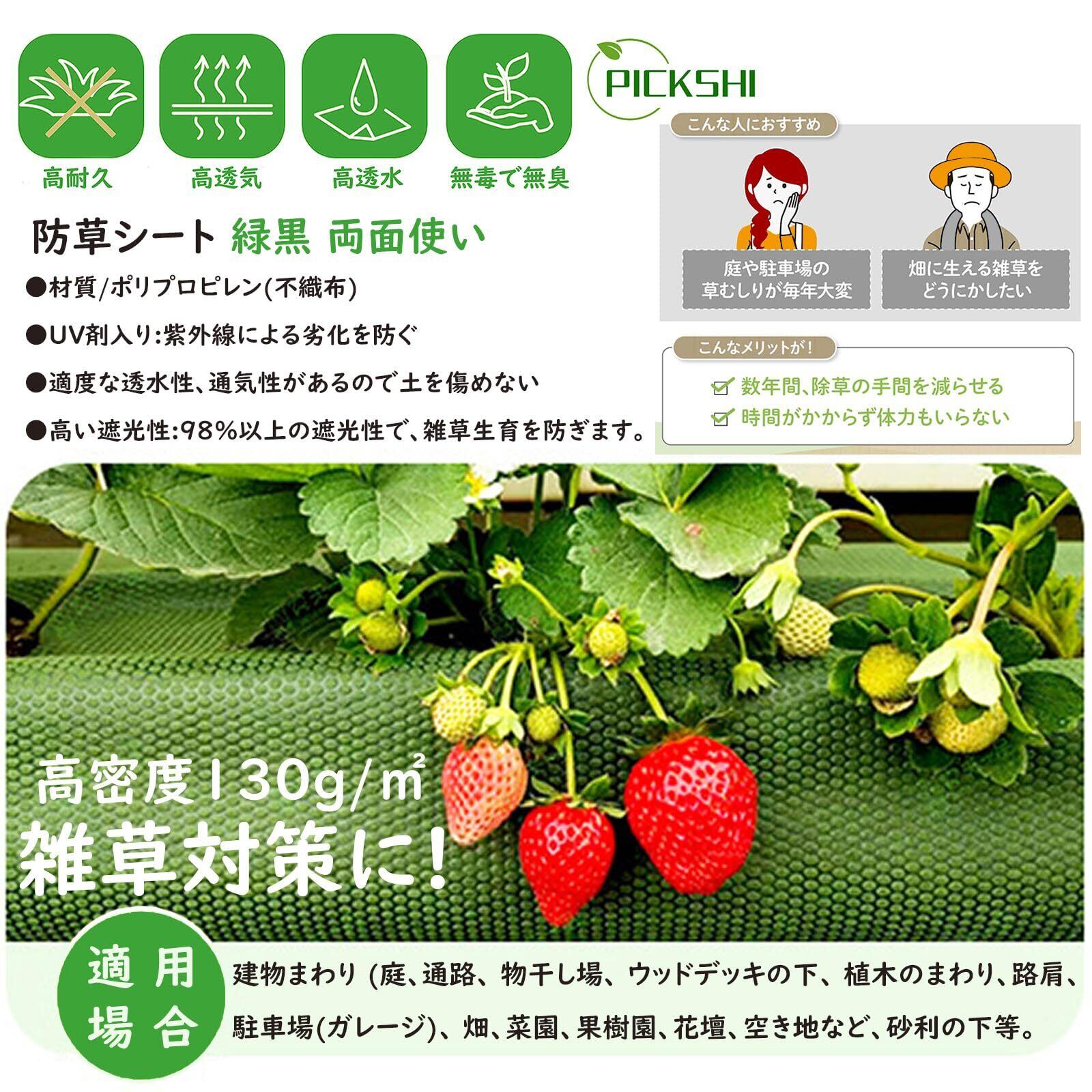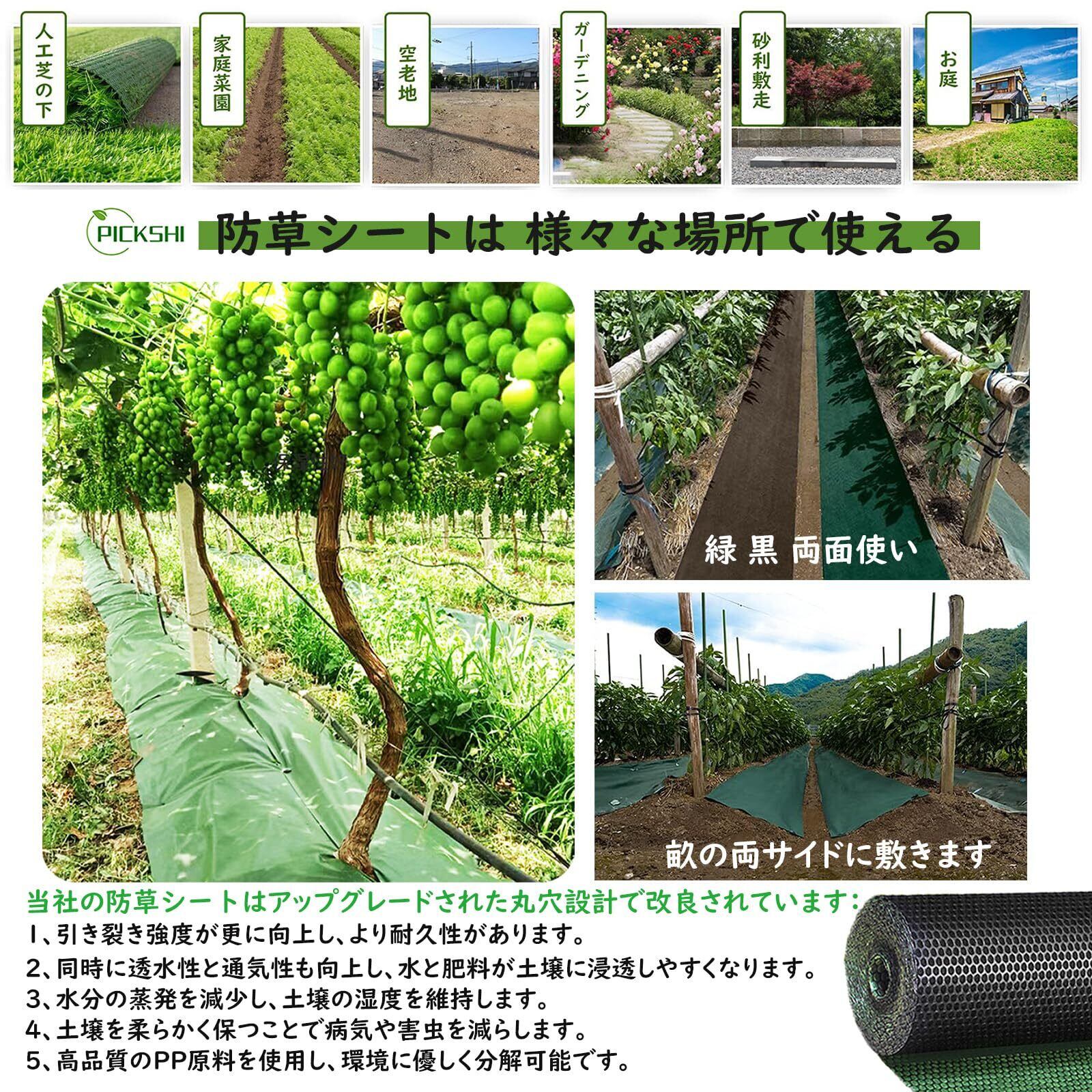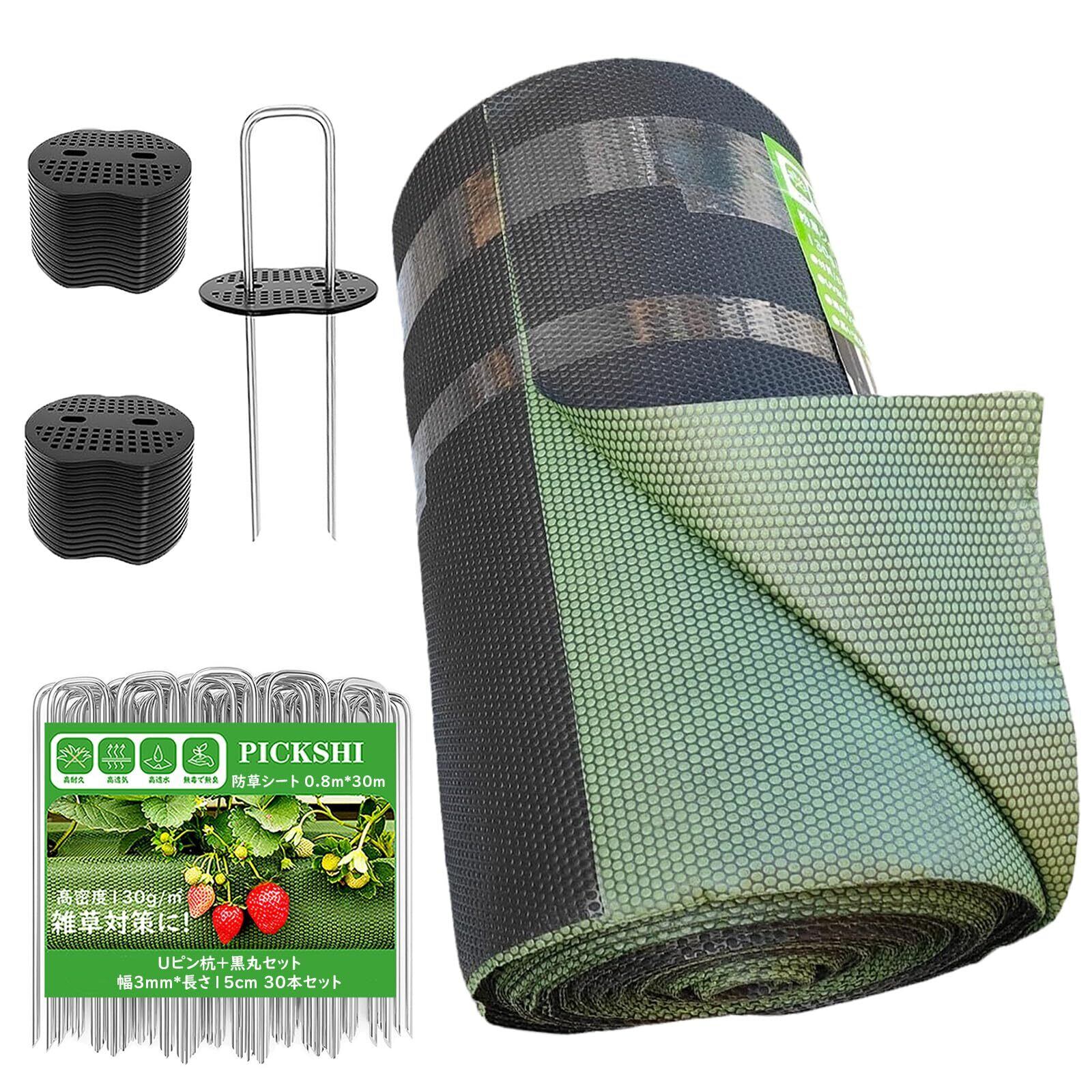 PICKSHI 【緑黒両面】防草シート 0.8*30m 雑草防止シート 130g/m²高密度 5-8年耐久 グリーン 黒両面使い トウモロコシ繊維 PLA製 丸穴設計 高耐久 除草シート 高透水 厚手不織布 草よけシート UV剤入り 紫外線劣化防止 園芸用ぼうそうしーと (130G 80CM*30M) | KSショップ