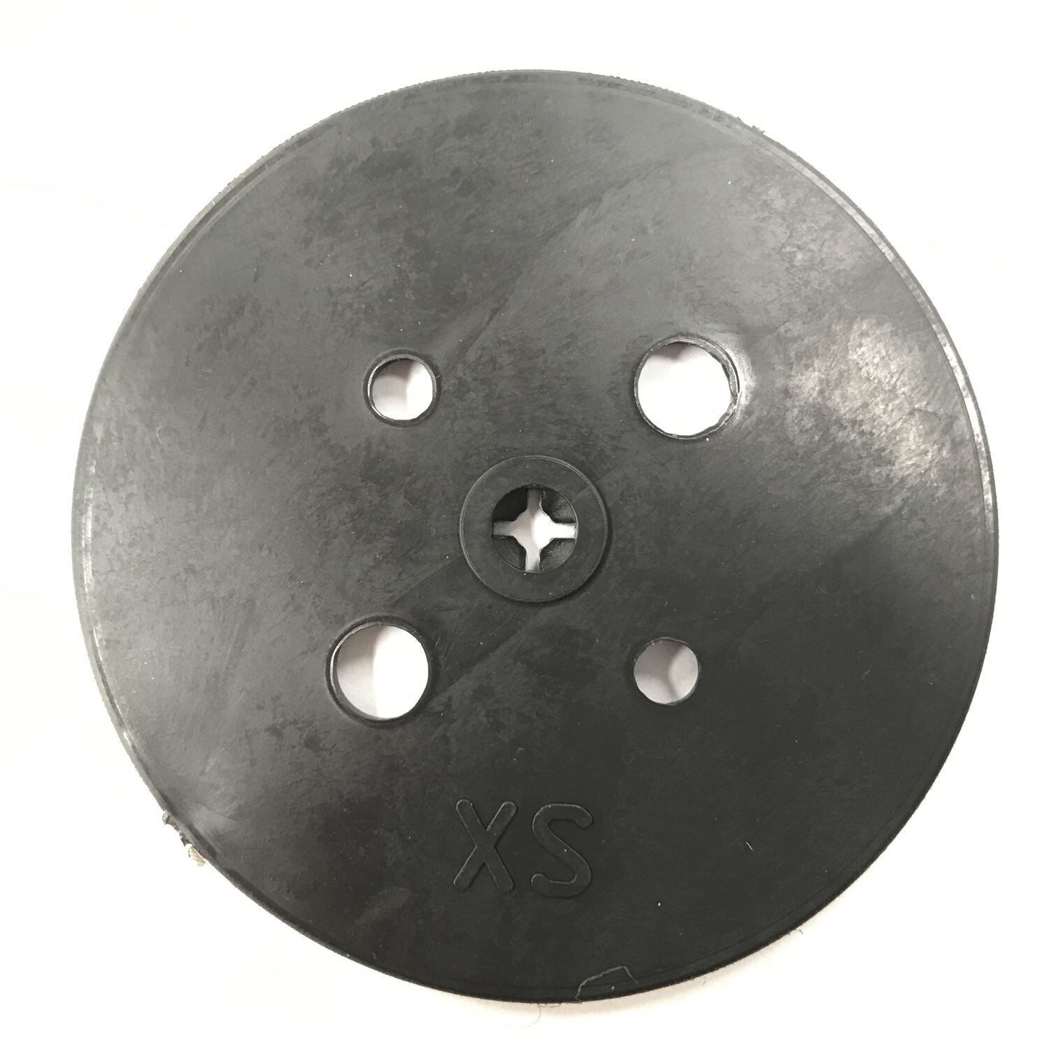 黒丸板(径60mm)の中央部の穴に釘(長150mm)を通してハンマーなどで打ち込みます。黒丸板がしっかりとシートを固定します。