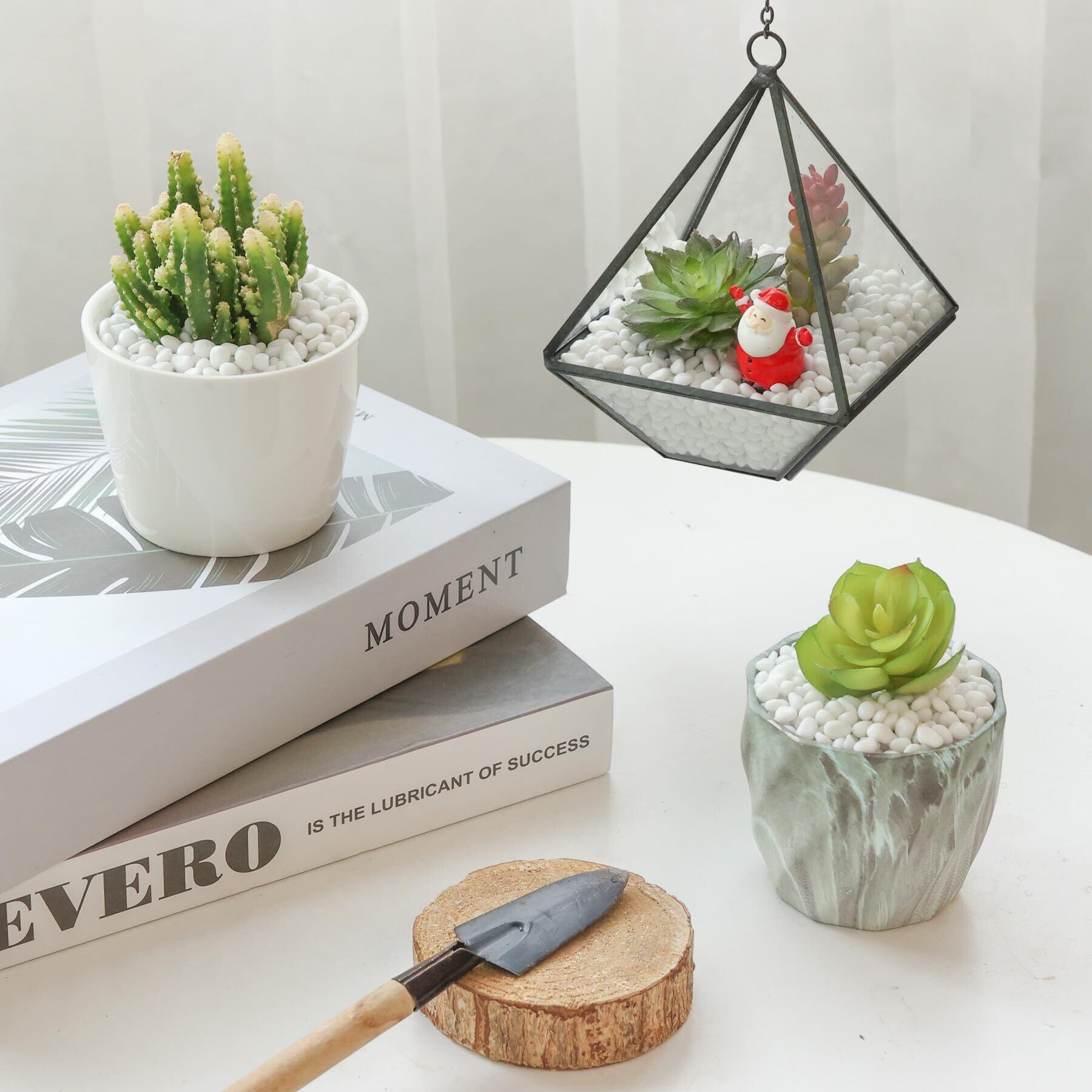 【園芸のアクセサリー】多肉植物やサボテン、盆栽の土に雪のように真っ白な色の飾り石で覆えば植物全体が明るい印象になり、見た目の清潔感が上がります。