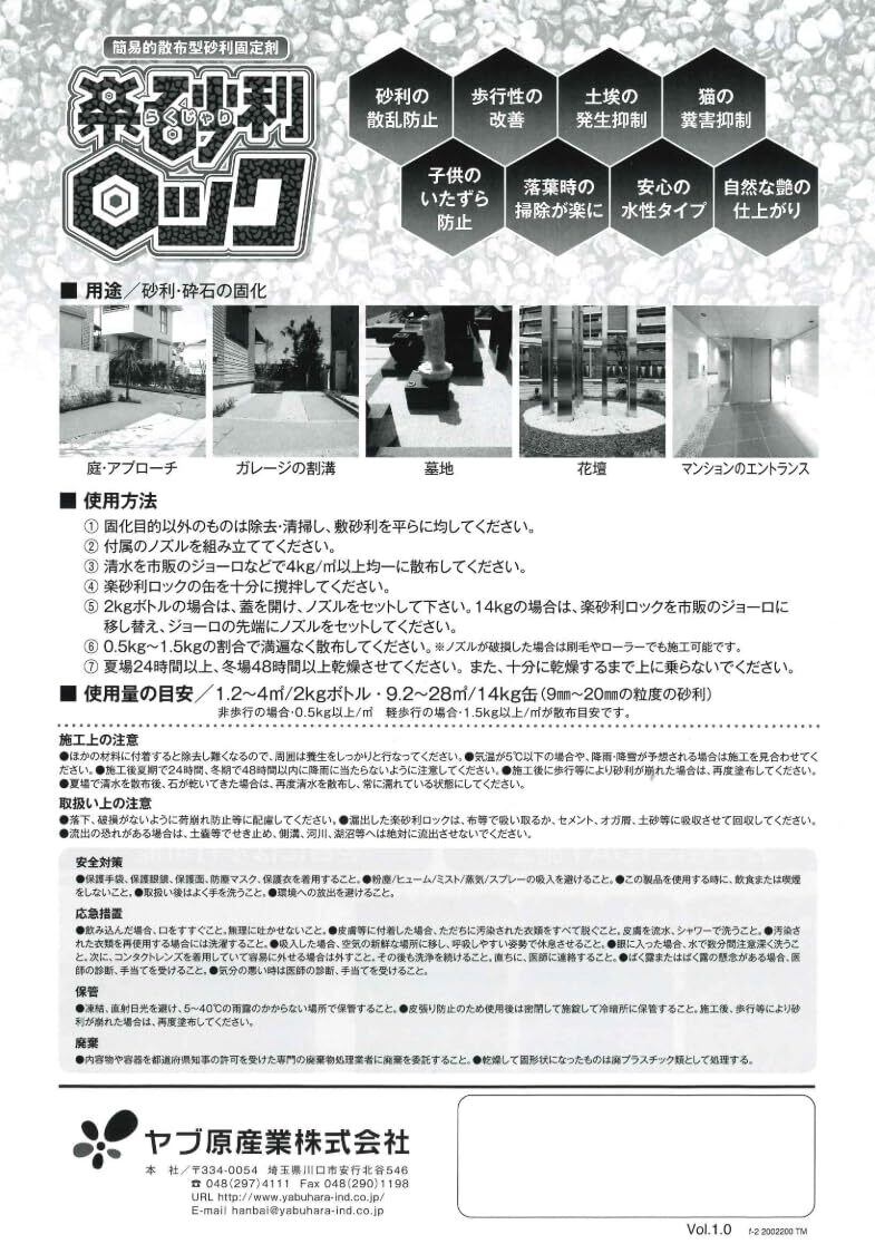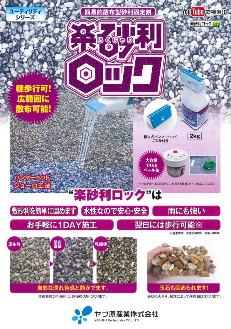 ヤブ原産業(Yabuhara Industry) 砂利を固めるなら『簡易的散布型砂利固定剤 楽砂利ロック』