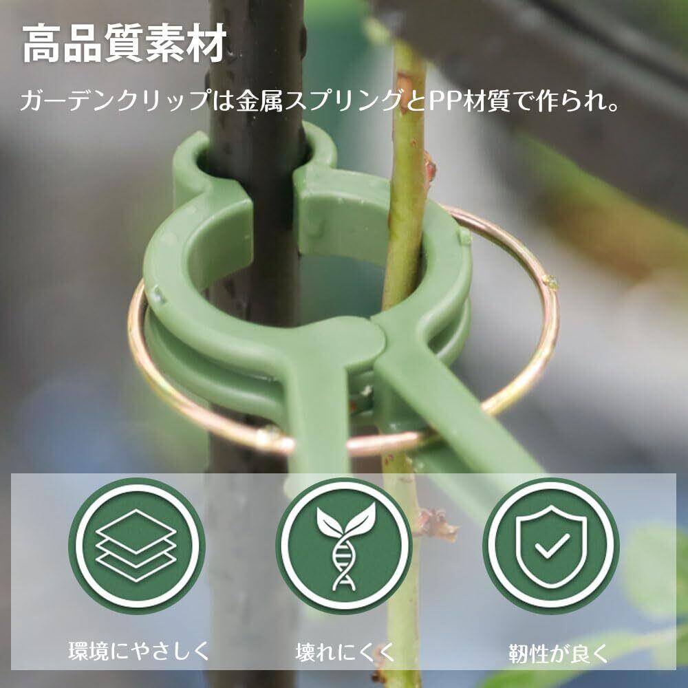【高品質素材】:ガーデンクリップは金属スプリングとPP材質で作られ。環境にやさしく、植物を損なうことができなく。靭性が良く、壊れにくく、変形しやすく、老化防止、使用が完了したら、ガーデンクリップを取り外して保存し、後で再び使用することができる。