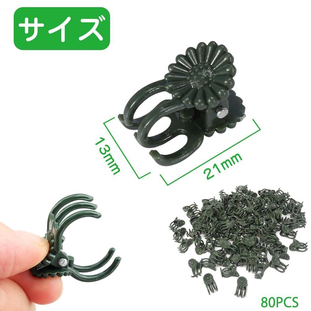 つる植物用クリップ 80個|園芸用 プラスチック製|茎誘導・直立サポート(洋蘭/庭の花対応)|植物壁/つる固定 便利クリップセット