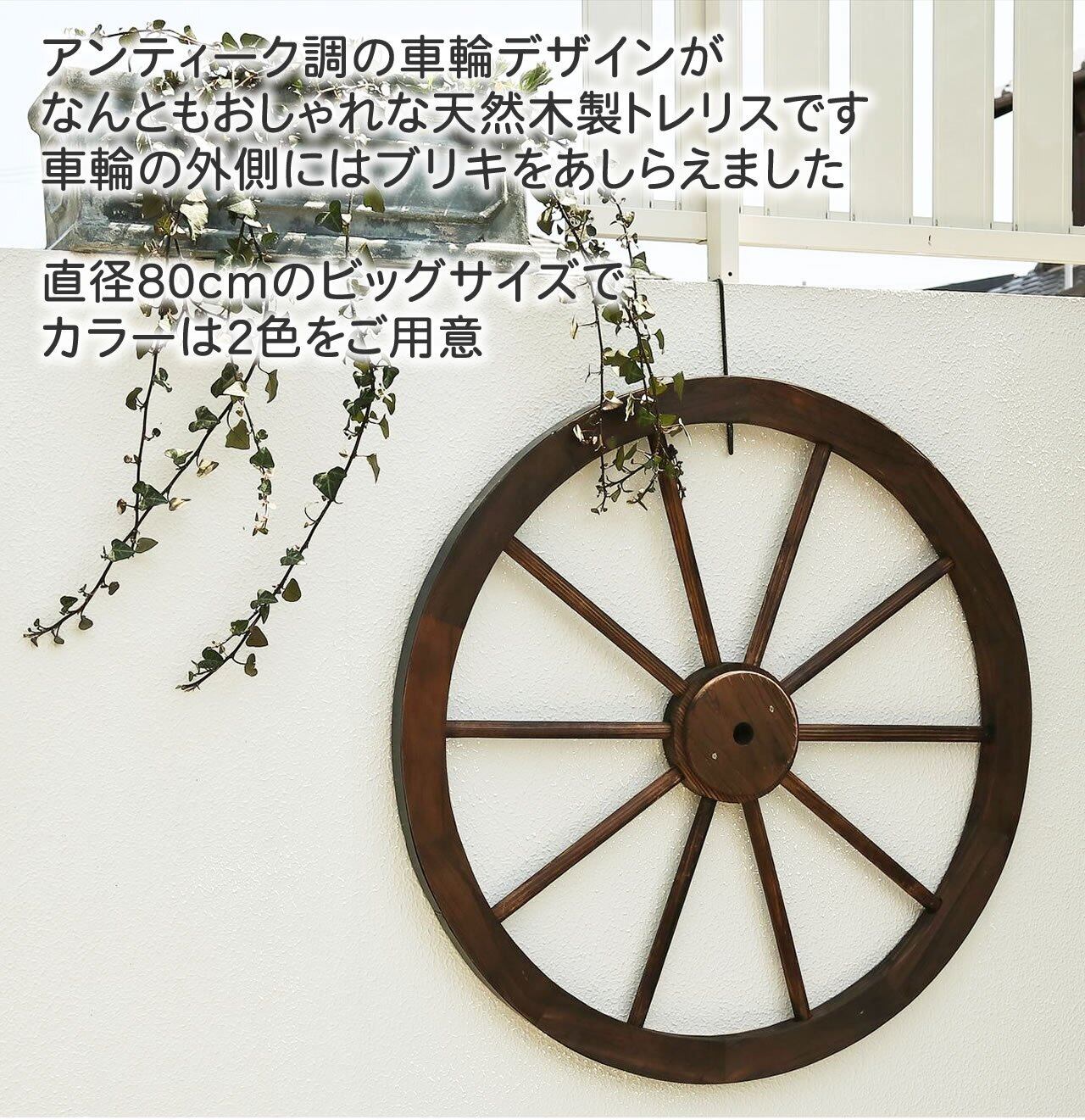 ガーデンガーデン 天然木製 車輪トレリス アンティークブラウン 直径80cm×厚さ35mm 焼き磨き WT-80DBR
