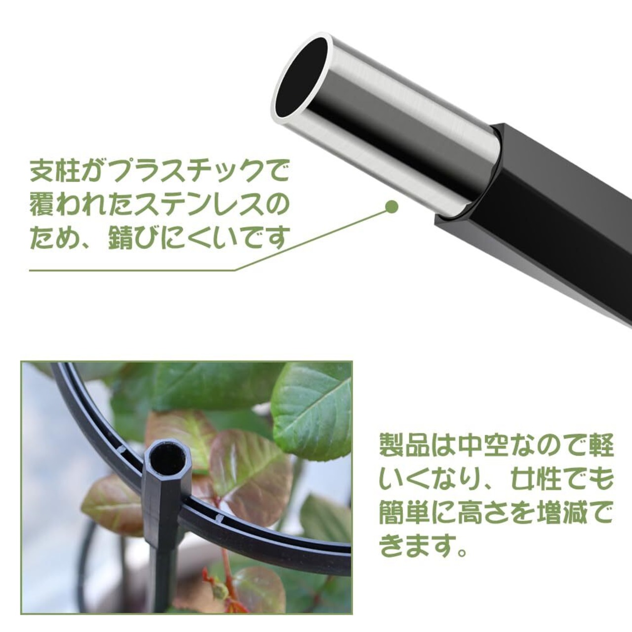 【高品質&安全】プラスチックで覆われたステンレスのため、安定感があるで、錆びにくいで、永くご使用いただけます。中空なので、軽くて、下には底部が尖った設計で、普通の平底より土に挿しやすく、女性でも簡単にできます。プラスチック製の支柱ため、触れても怪我をすることがなく、とても安全です。