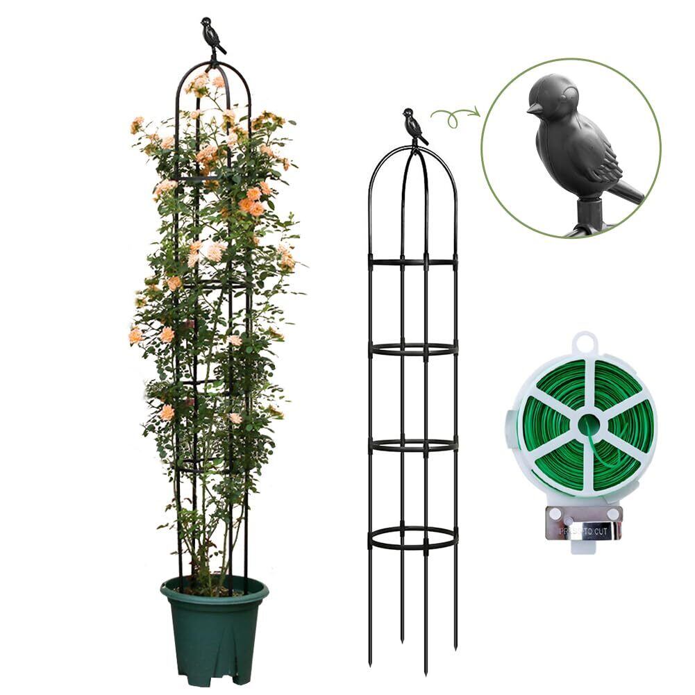 【見栄えが良い&省スペース】単一色で統一感もあって上品感もでます、また、オベリスクの上に鳥飾りがあります、とってもよいのガーデニング用品です。簡単に設置で、省スペースな空中栽培が可能、目指すのはイングリッシュガーデンだ!!