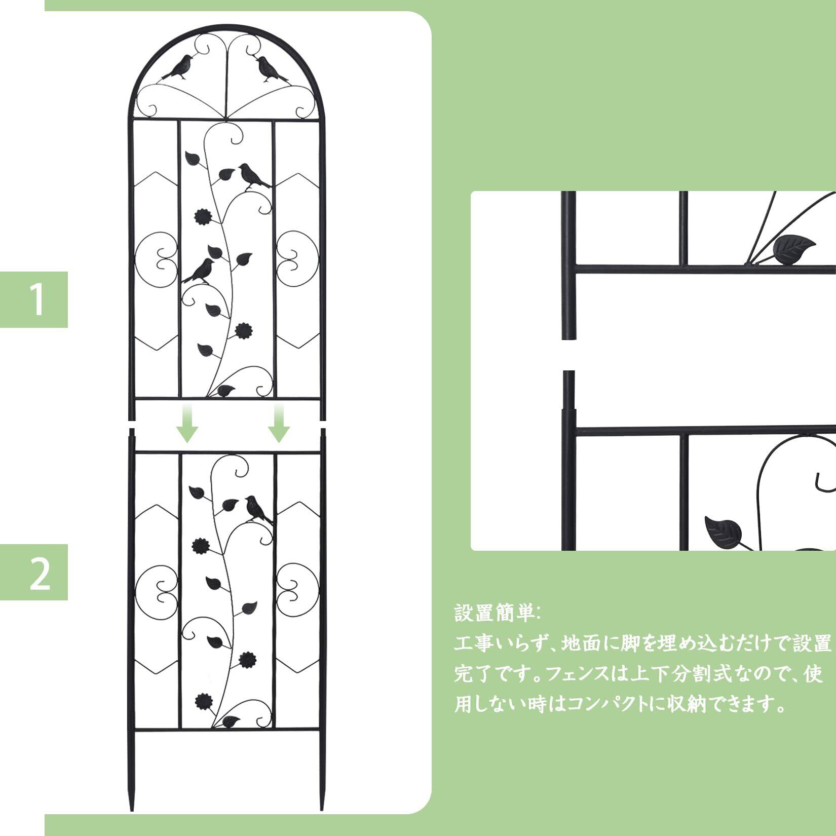 耐久性に優れる:頑丈なアイアン素材で作られたガーデンフェンス、粉体塗装されたので耐久性と防錆性に優れています。