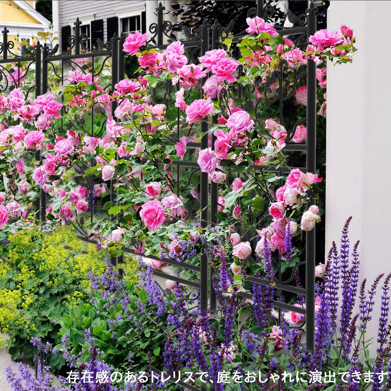 【お得な2点セット】ハイタイプ(約172cm)のアイアンフェンスの2点セットで、バラやつる性の植物を誘引して、美しく飾るのに使うほか、金具を使うと簡単に連結でき、複数を並べて目隠しなどに活用することも可能で、壁面いっぱいに植物が広がっているのような空間を演出することができ、豪華さの倍増が期待できます