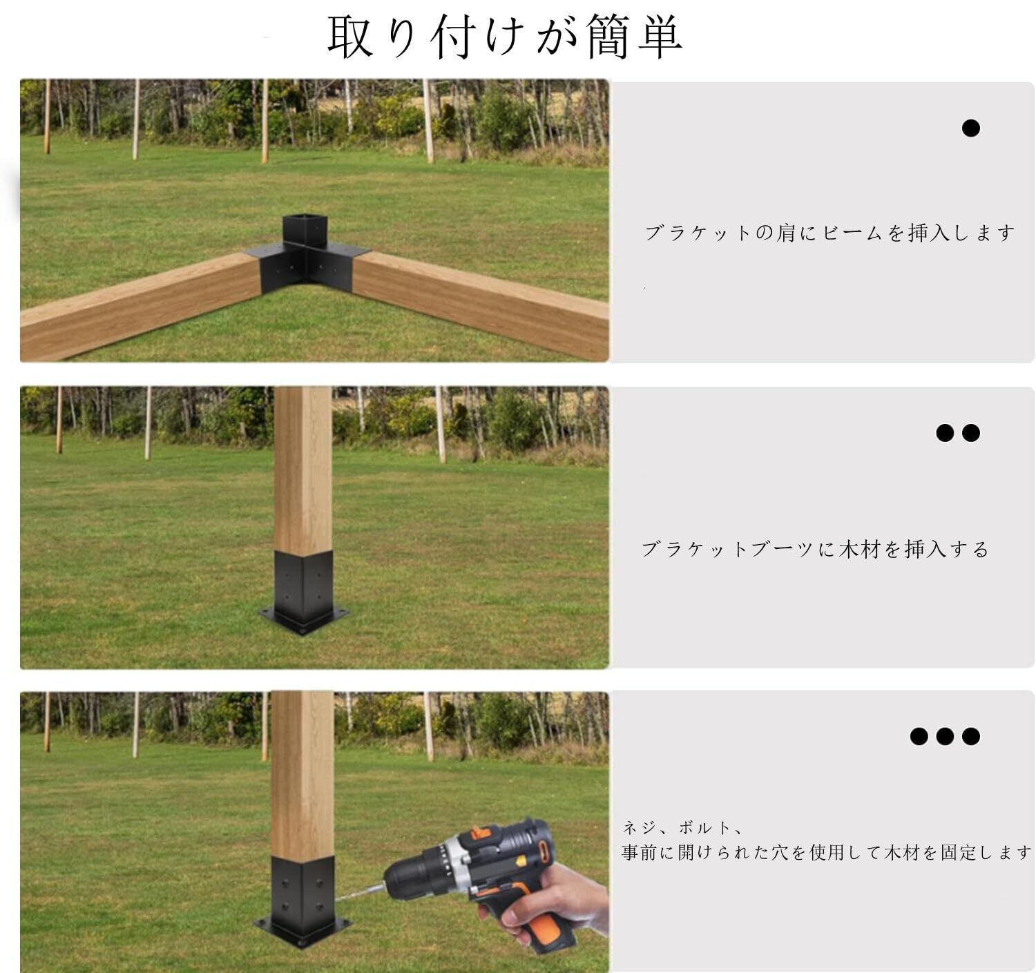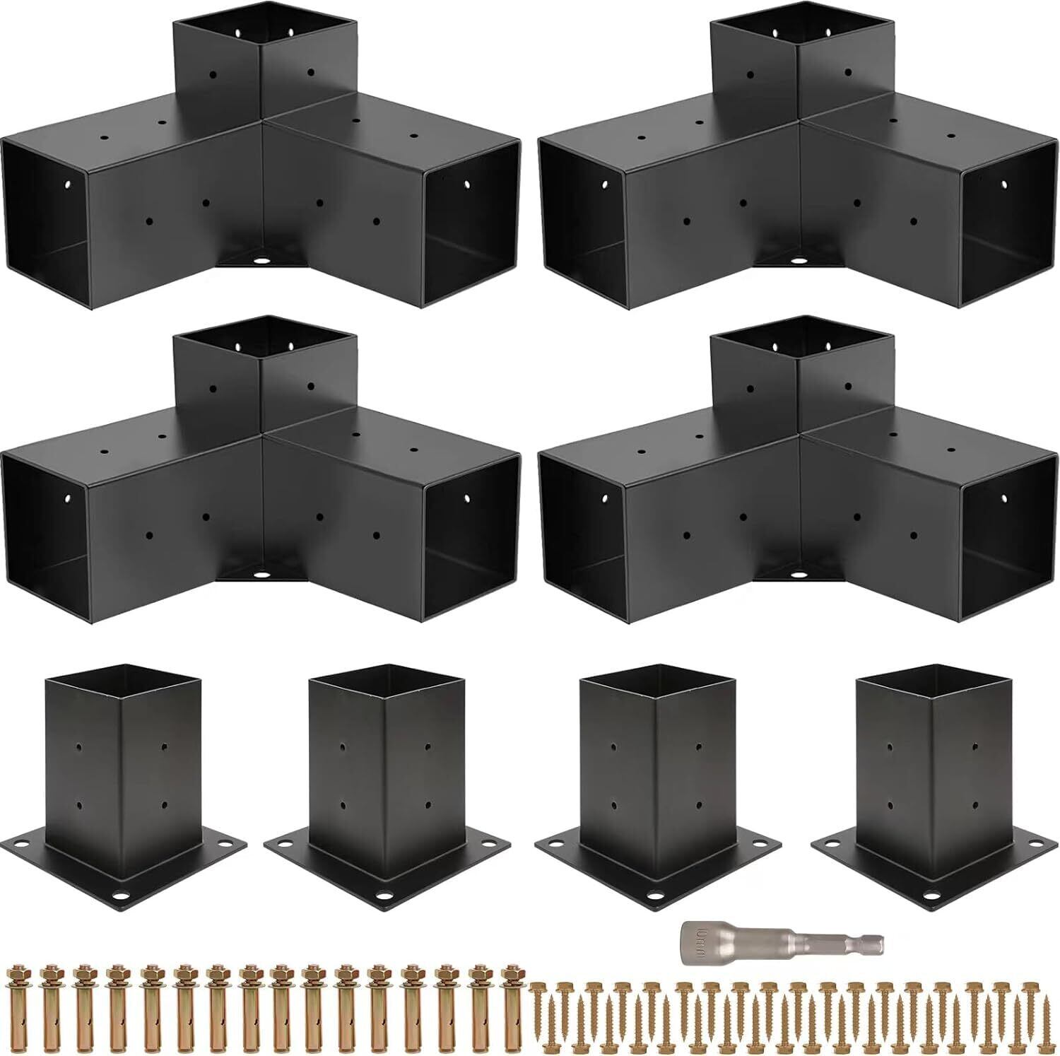 Dudodeパーゴラキット ブラケット付き3ウェイ直角コーナーブラケット 木工DIYポストベースキット ガゼボ/パティオパーゴラ/ログキャビン用木製ビーム 屋外パーゴ金具 4x4の木材用 (8個パック) | KSショップ