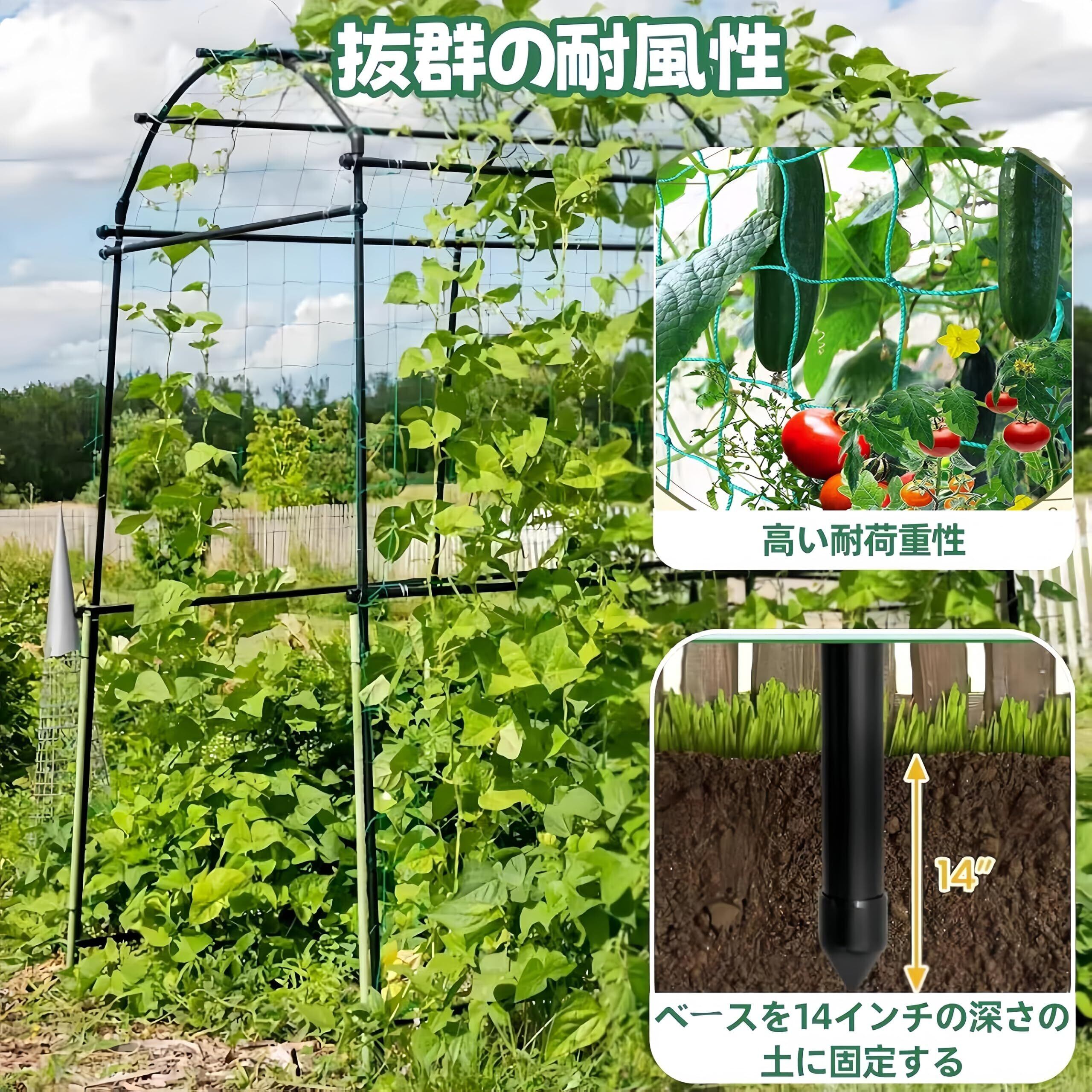 【抜群の耐風性】当社のドリルロッドを使用してベースを14インチの深さで土に固定することで、安定性を向上させ、強風に耐えます。 この機能により、トレリスのパフォーマンスが向上し、屋外条件に最適です。