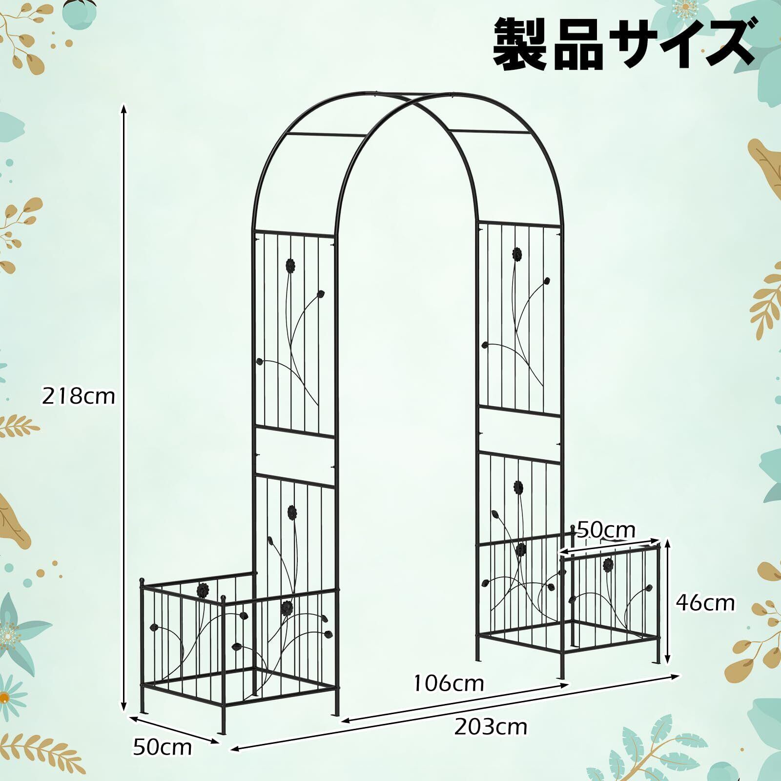 TANGKULA バラアーチ ガーデンアーチ アイアンアーチ ガーデニング用品 トレリス 幅203cm 奥行50cm 高さ218cm 結婚式 園芸 菜園 玄関 バラ つる 花立て おしゃれ 耐候性 多機能 組み立てやすい 立体構造 (鉢置き台付き) | KSショップ
