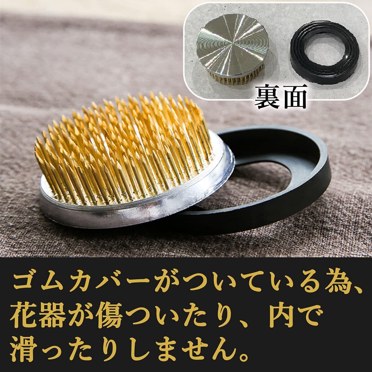 剣山の底の部分には取り外し可能なゴムカバーが付いています。ゴムカバーがクッションになり花器に傷をつけることなく、また花器内での滑りを防ぎます。