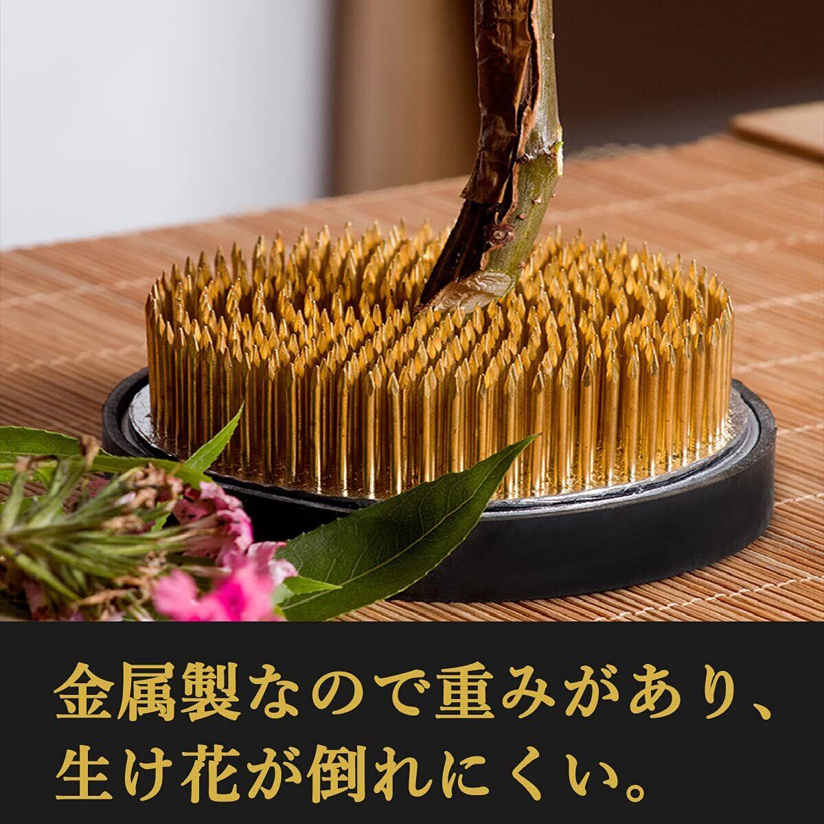 重みのある金属製になりますので、丈の長い花を生ける際にも安定します。3サイズのご用意になりますので、花材や花器に合わせて大きさを自由にお選びいただけます。