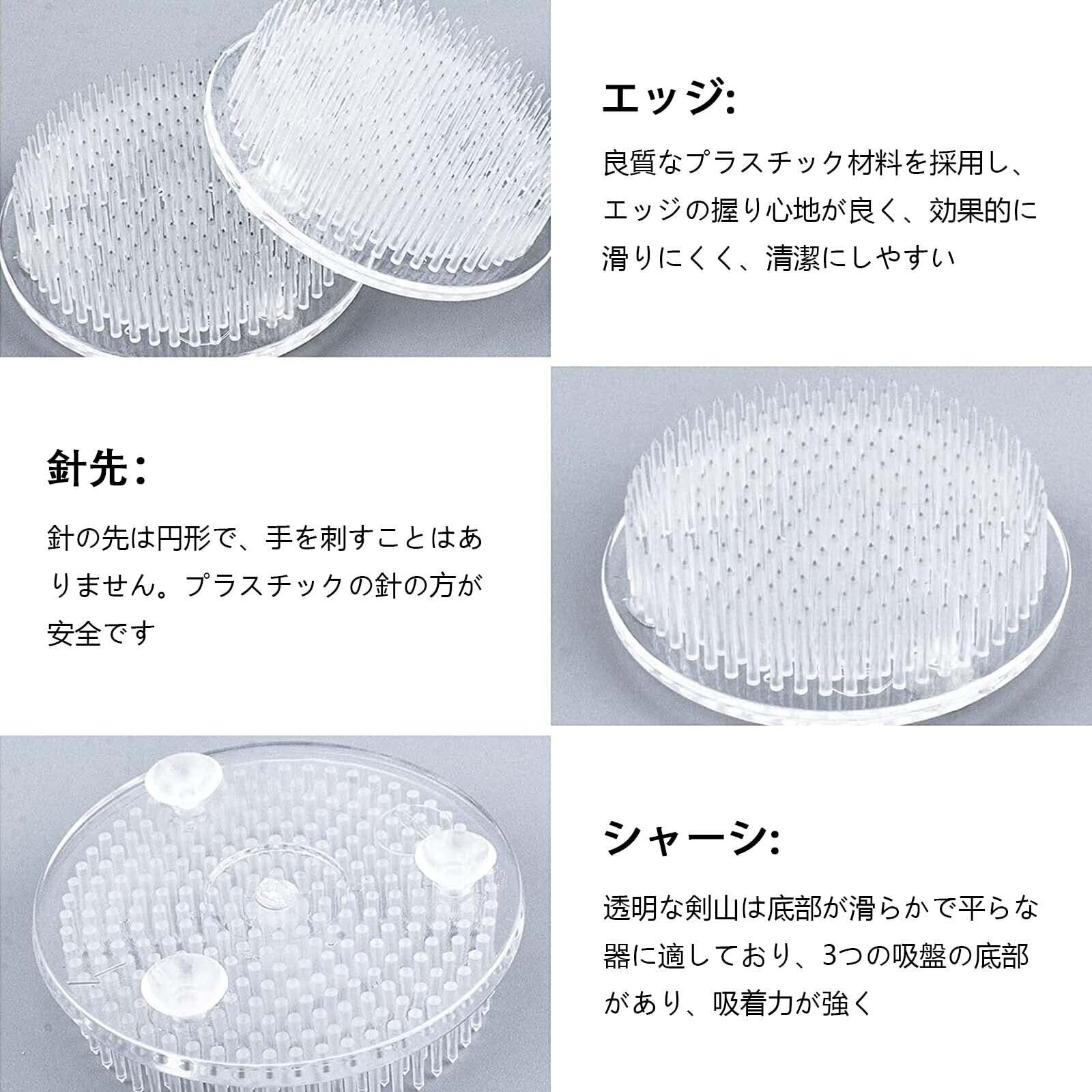 強力吸盤:剣山の裏面に吸盤が付いていますので、花器の滑らかな表面にしっかりと固定することができます。使用前に表面を乾かしてください。花瓶に水を入れた後、水圧により吸盤がよりしっかりと固定されます。 剣山の素材はプラスチックですので、あまり太い枝を差し込むのはお勧めしません