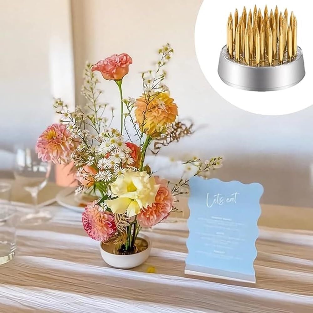 「花枝をしっかり固定」:頑丈な剣山で設計されており、花の枝が安定し、揺れにくく、フラワーアレンジメントを完璧に演出します。 生花、ドライフラワー、造花を問わず、剣山に簡単に固定でき、完璧なフラワーアレンジメント効果を発揮します。
