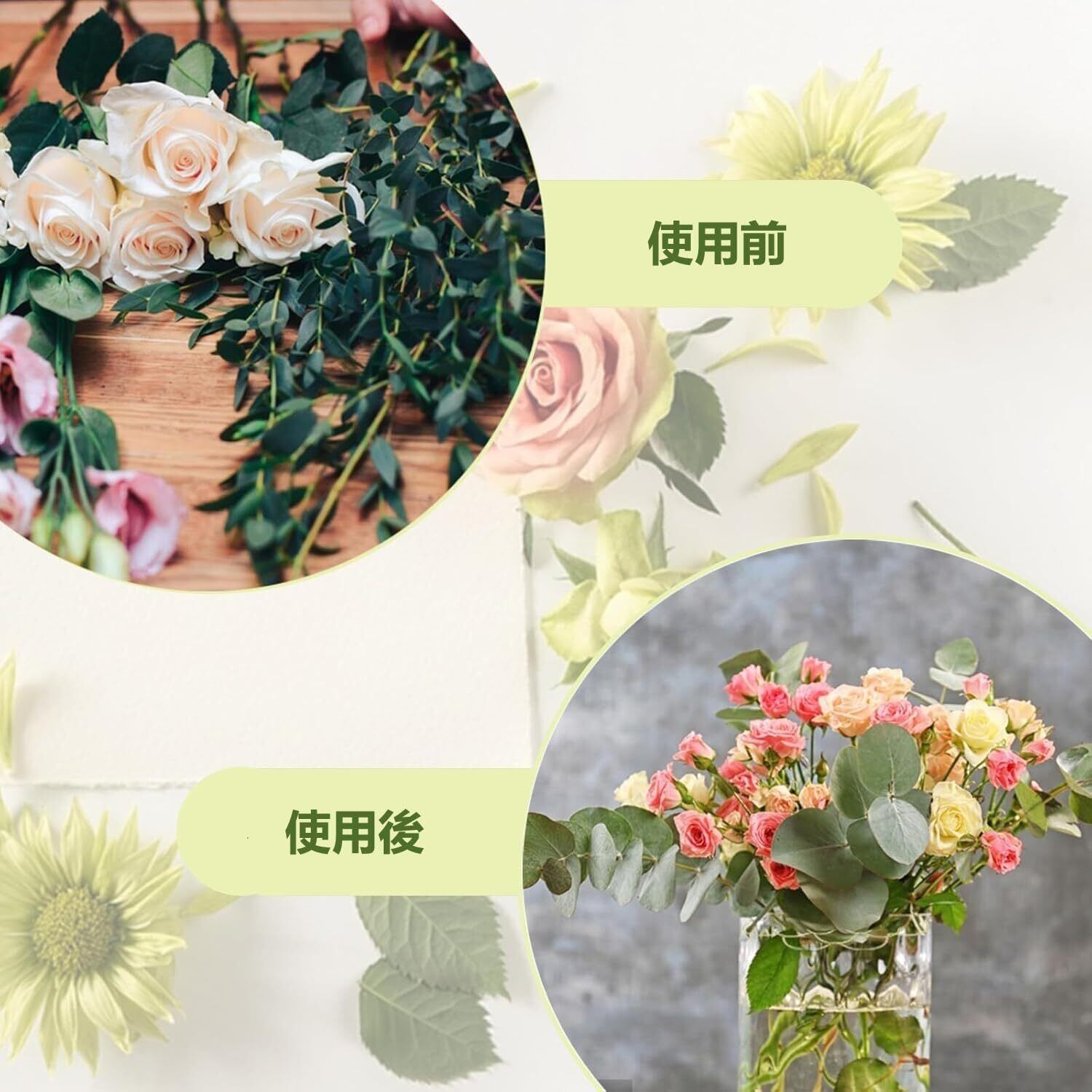 「適用シーン」:家庭用のフラワーアレンジメントはもちろん、イベント、ウェディング、花屋さん、店舗のディスプレイにもぴったり。さまざまなシーンで美しい花のアレンジが簡単に作れます。生け花以外にも、化粧ブラシを束ねて整理する際にも便利です。キッチンでは箸やスプーン、フォークなどをまとめて置くことができます。