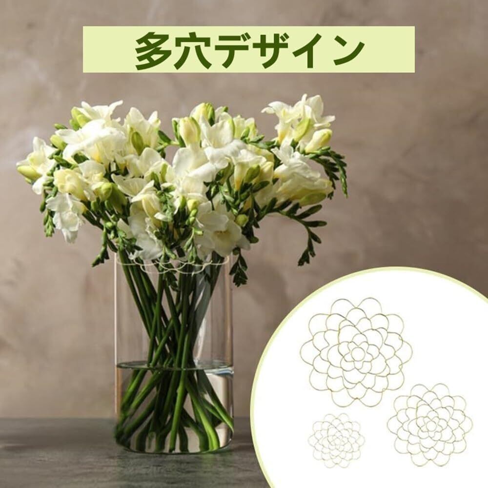 「使いやすい」:このツールはとても使いやすく、花茎をホルダーの穴に差し込むだけで簡単に固定できます。アレンジが崩れる心配がなく、安定したディスプレイが作れます。3サイズ、各1個入り、大小さまざまなサイズの花器に対応可能。