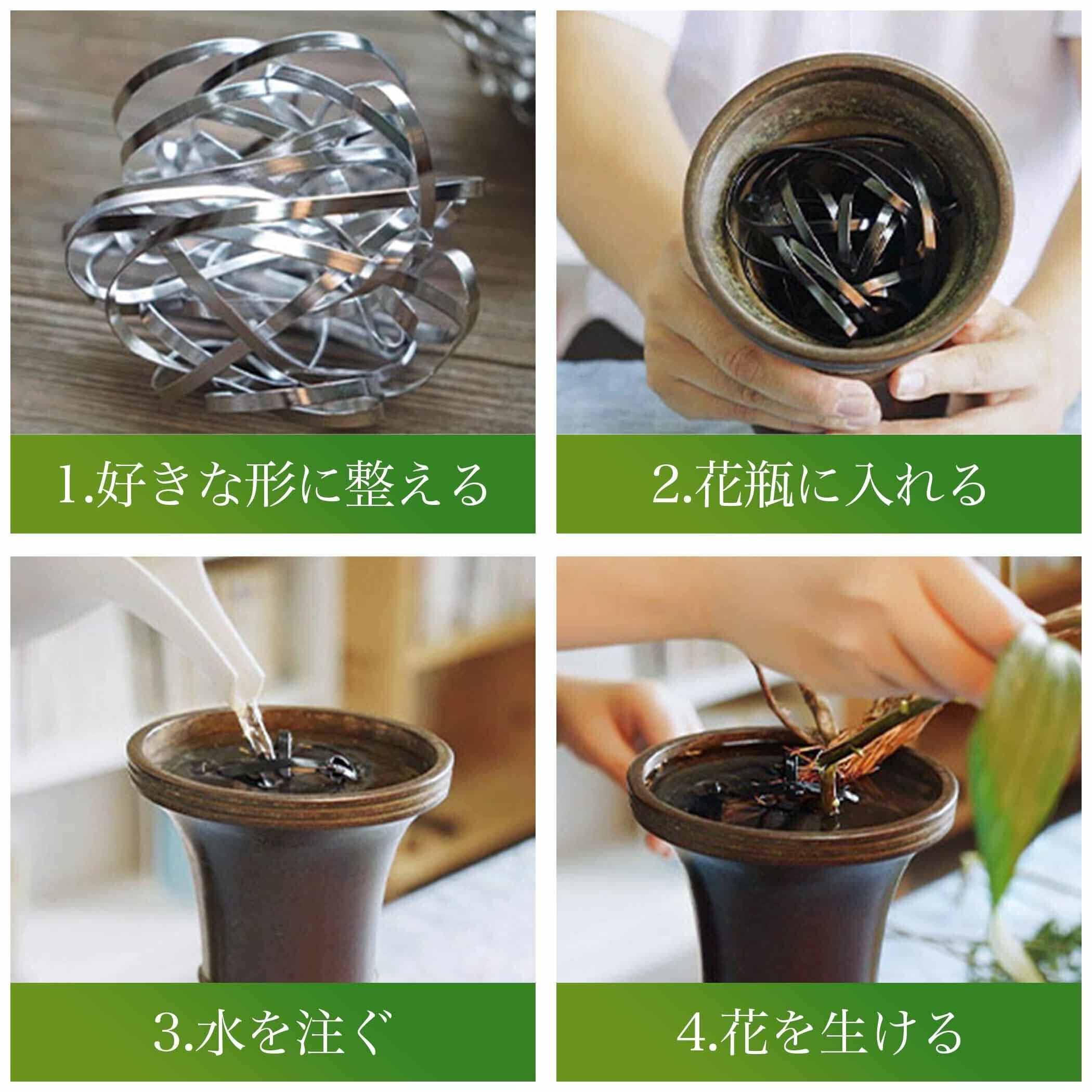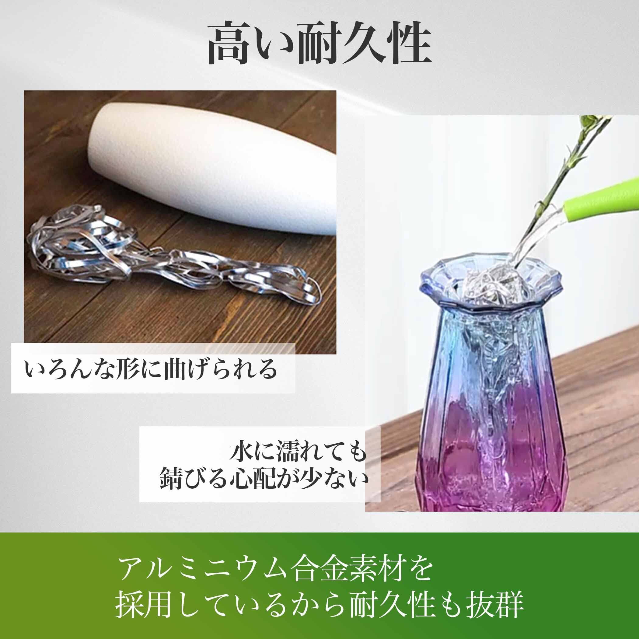 高い耐久性:アルミニウム合金素材を採用しているため、耐久性も抜群です。水に濡れても錆びる心配が少ないので、生け花の見た目を損なう心配も少ないです。自由に形を変えてお使いいただけます。