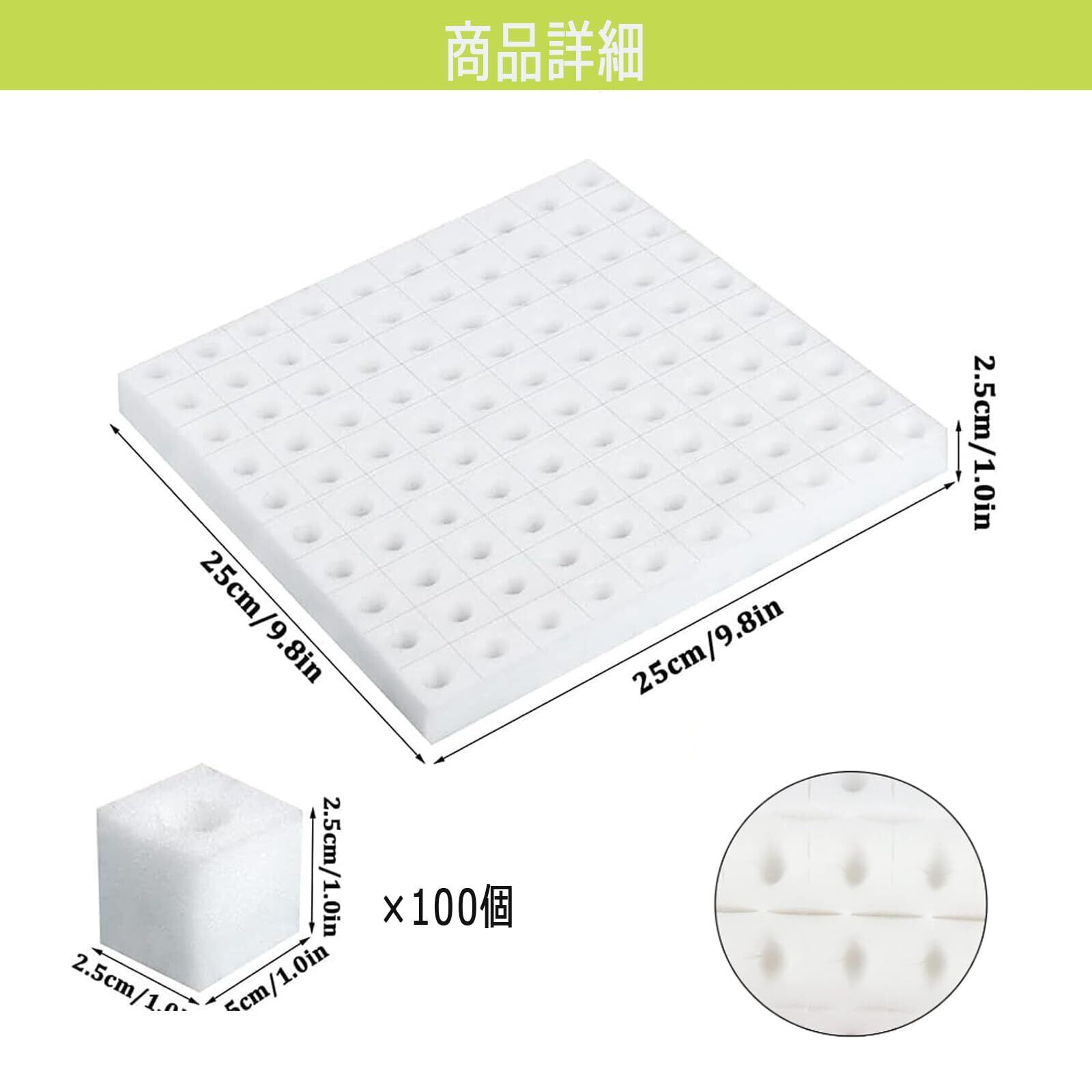 BaraRose 水耕栽培 スポンジ 100個セット25*25cm すいこう栽培 野菜植えスポンジ 容器 すいこう栽培 スポンジ 園芸用品 通気性 土壌なし 四角い苗スポンジ