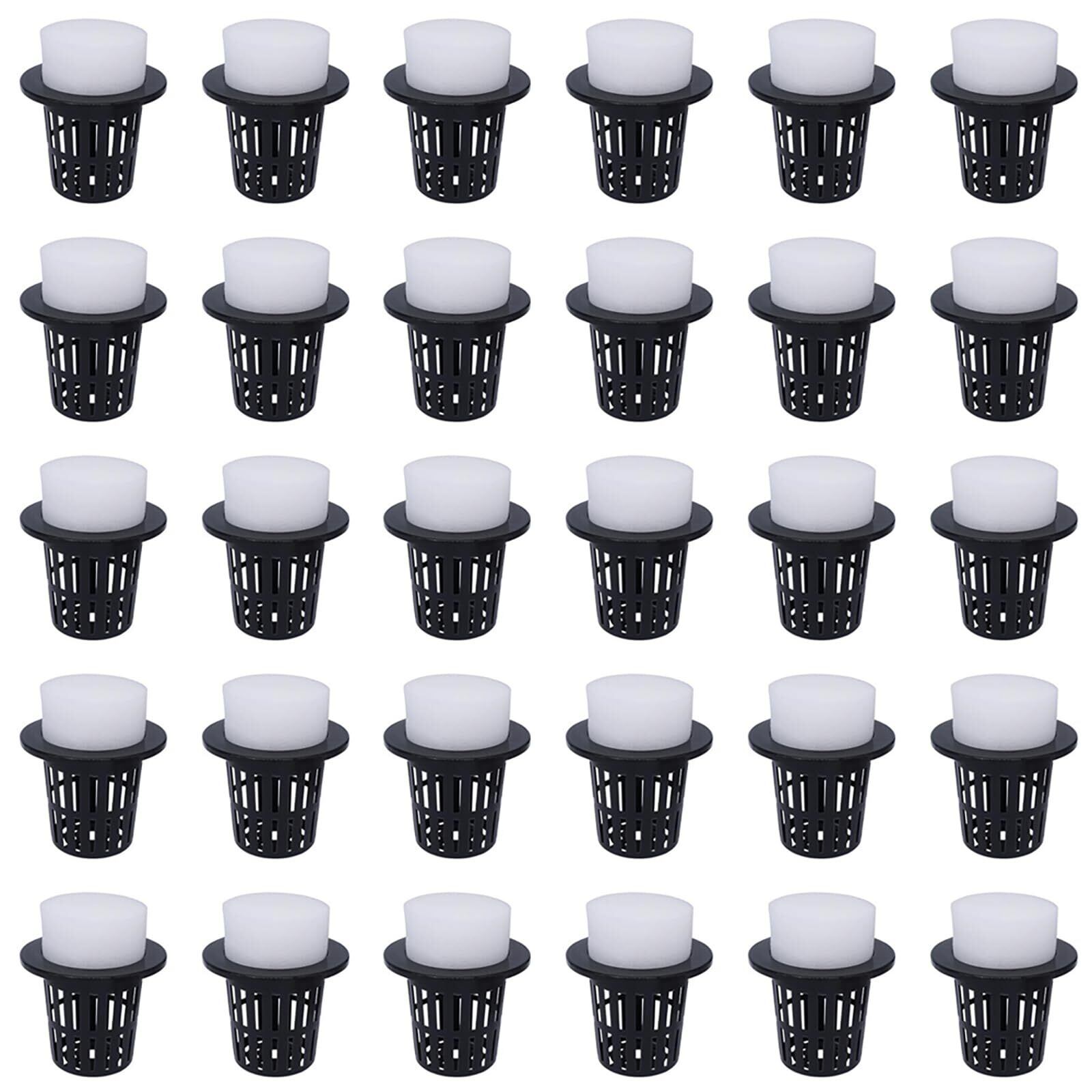 CHENLONB 水耕栽培鉢 定植かご 30個セット プラスチックメッシュポット スポンジ付き水培養 有機栽培 植物栽培 野菜栽培 園芸 庭 ガーデンニング 定植育苗かご (ブラック)