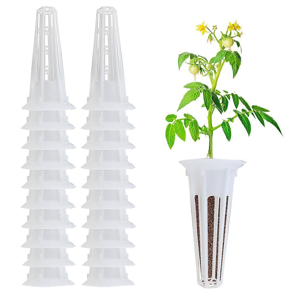 ESJNNK 水耕栽培鉢 20個入り 水耕栽培バスケット 円筒形育苗ポット 定植育苗かご 定植かご 給水栽培 プラスチックメッシュポット 育成 有機 植物育成カップ