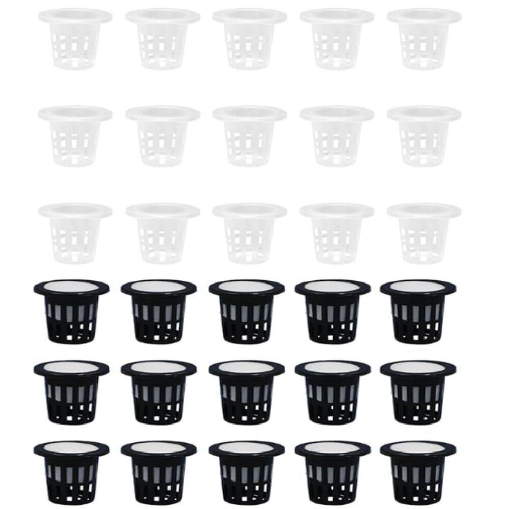 Jindizi 水耕栽培ポット水耕栽培鉢 定植かご 30個セット pvcメッシュポット 水培養 有機栽培 植物栽培 野菜栽培 園芸 庭 ガーデンニング 定植育苗かご (ブラック ホワイト)