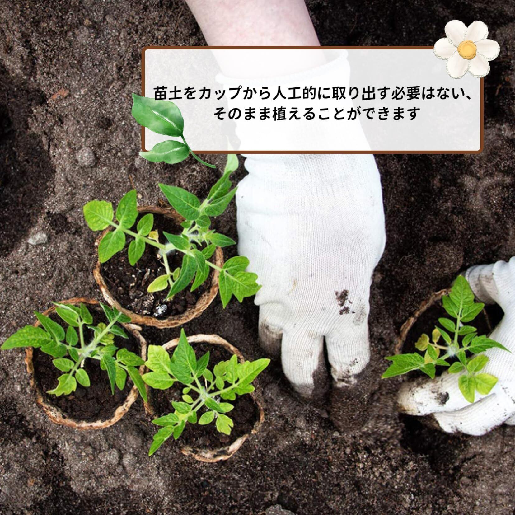 【環境に優しい素材】再生紙と土を使用したエコフレンドリーな育苗ポット。自然に分解されるため、環境にやさしく、持続可能なガーデニングをサポートします。移植時には袋を開ける必要がなく、ポットごと土に植えられるので、手間を減らしてスムーズに作業ができます。