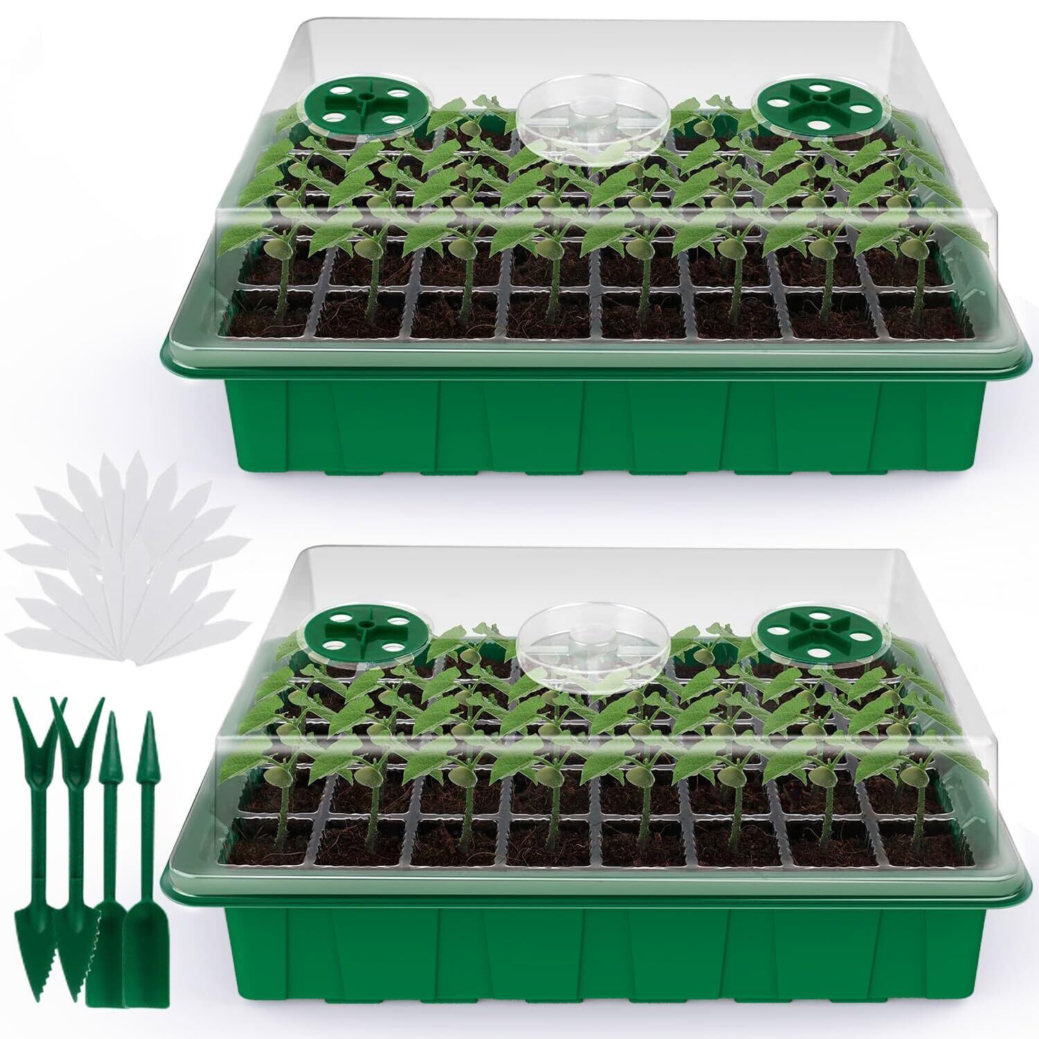 HEYIRAN 2個 40穴 育苗ポット セット セット|透明育苗箱&カバー付き 発芽状況一目瞭然 通気性設計 過剰湿気防止 花栽培/ベランダ農園/家庭用温室/園芸教育に最適 調節可能な通気孔&立体排水システム 省スペース設計 | KSショップ