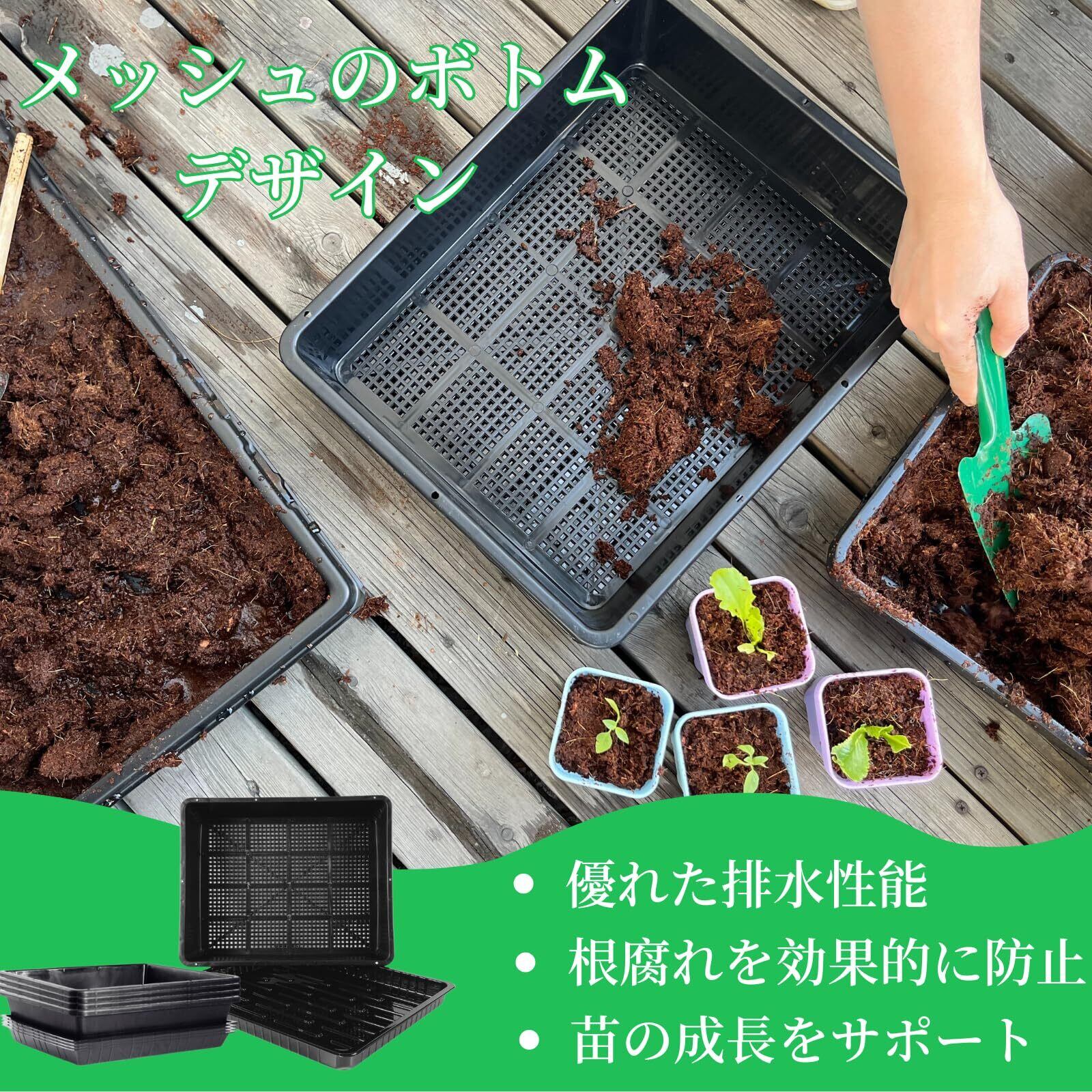 園芸 作業トレイ-シンプルで効率的 - 植物の発芽ディスクは、浅く広い正方形構造で設計されており、根球を統合するための容量が大きく、通気性がよく、少ない土と培地で。マイクログリーンを簡単に収穫できます。