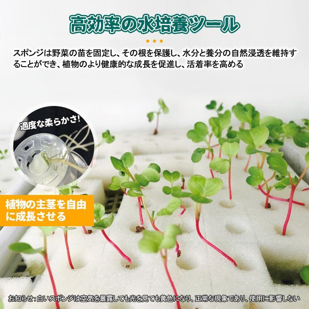 【高効率の水培養ツール】スポンジは野菜の苗を固定し、その根を保護し、水分と養分の自然浸透を維持することができ、根系はメッシュ織物を通して成長し、呼吸に有利で、植物のより健康的な成長を促進し、活着率を高める。