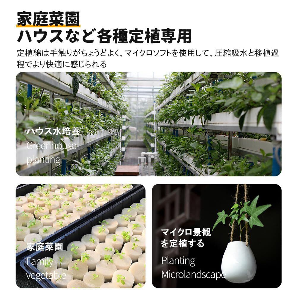 【広範な応用】このスポンジは水耕、花畑、家庭園芸、室内栽培及び緑化建設などの多種のシーンに適しており、野菜、花卉、その他の植物を栽培するのに関わらず、理想的な栽培ツールである。