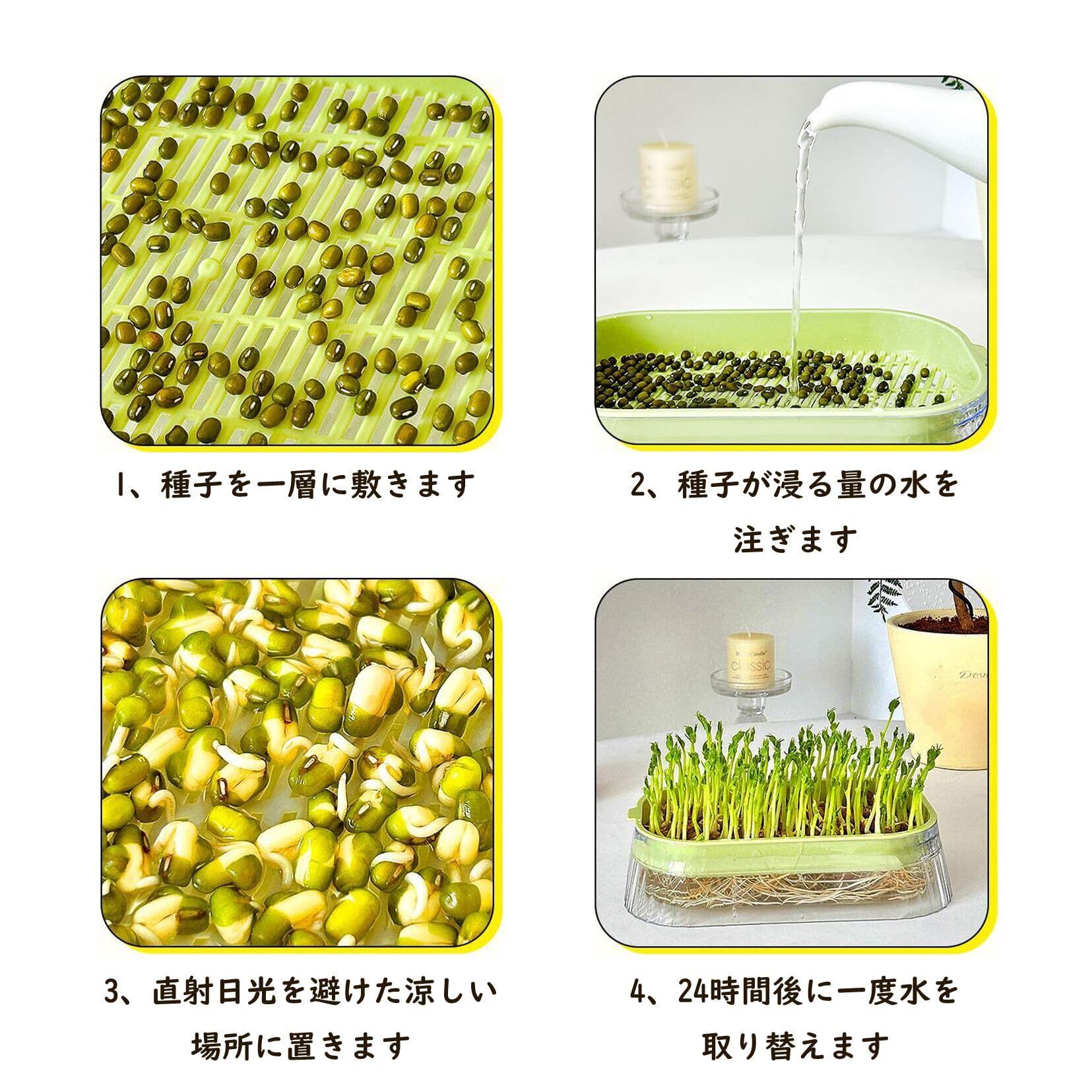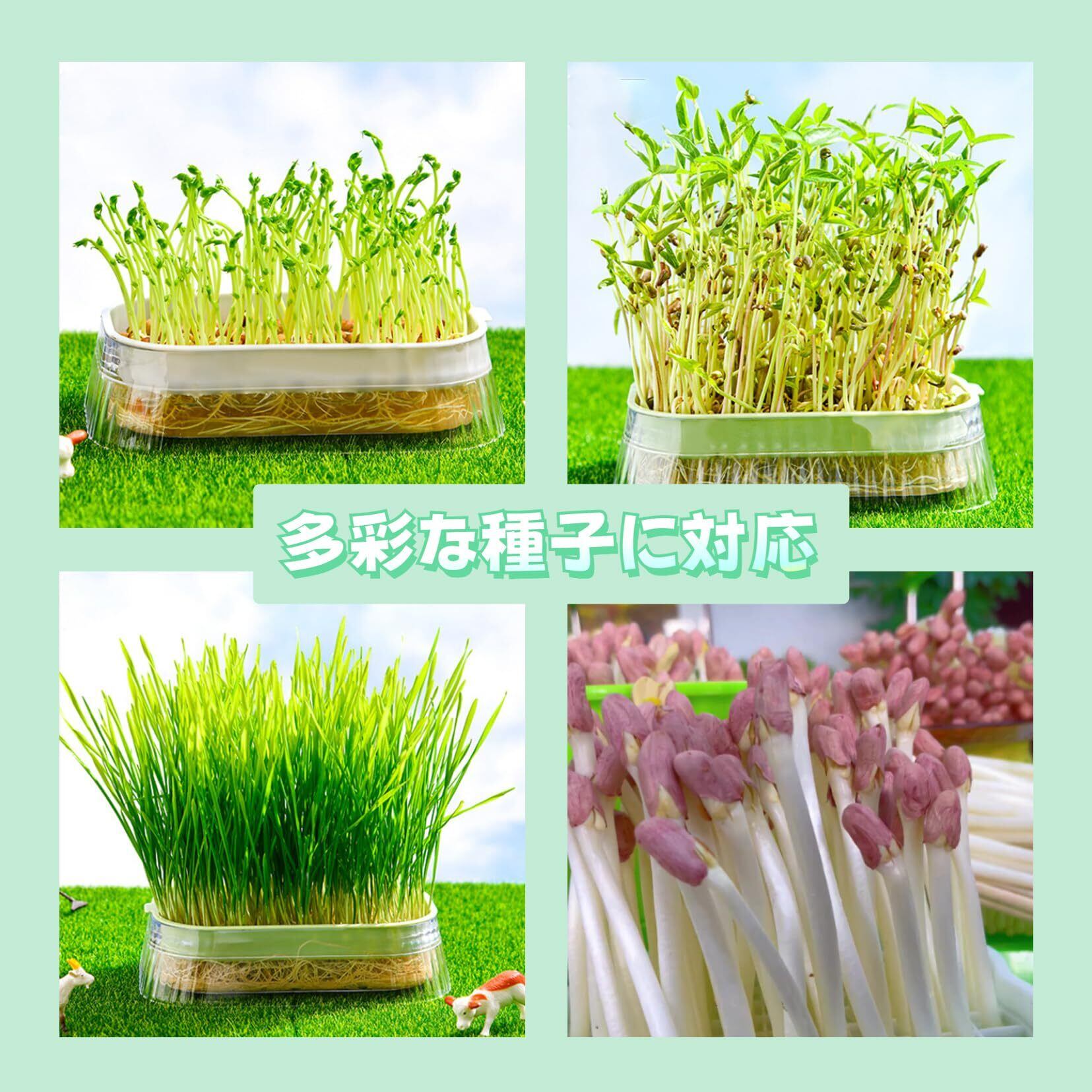 【多彩な種子に対応】豆類(枝豆、緑豆、ピーナッツ)や猫草、麦芽など、様々な小さな種子の発芽に最適。室内でも屋外でも使えますが、天候が悪い時は屋内で管理するのがおすすめです。家庭菜園の第一歩にぴったり!