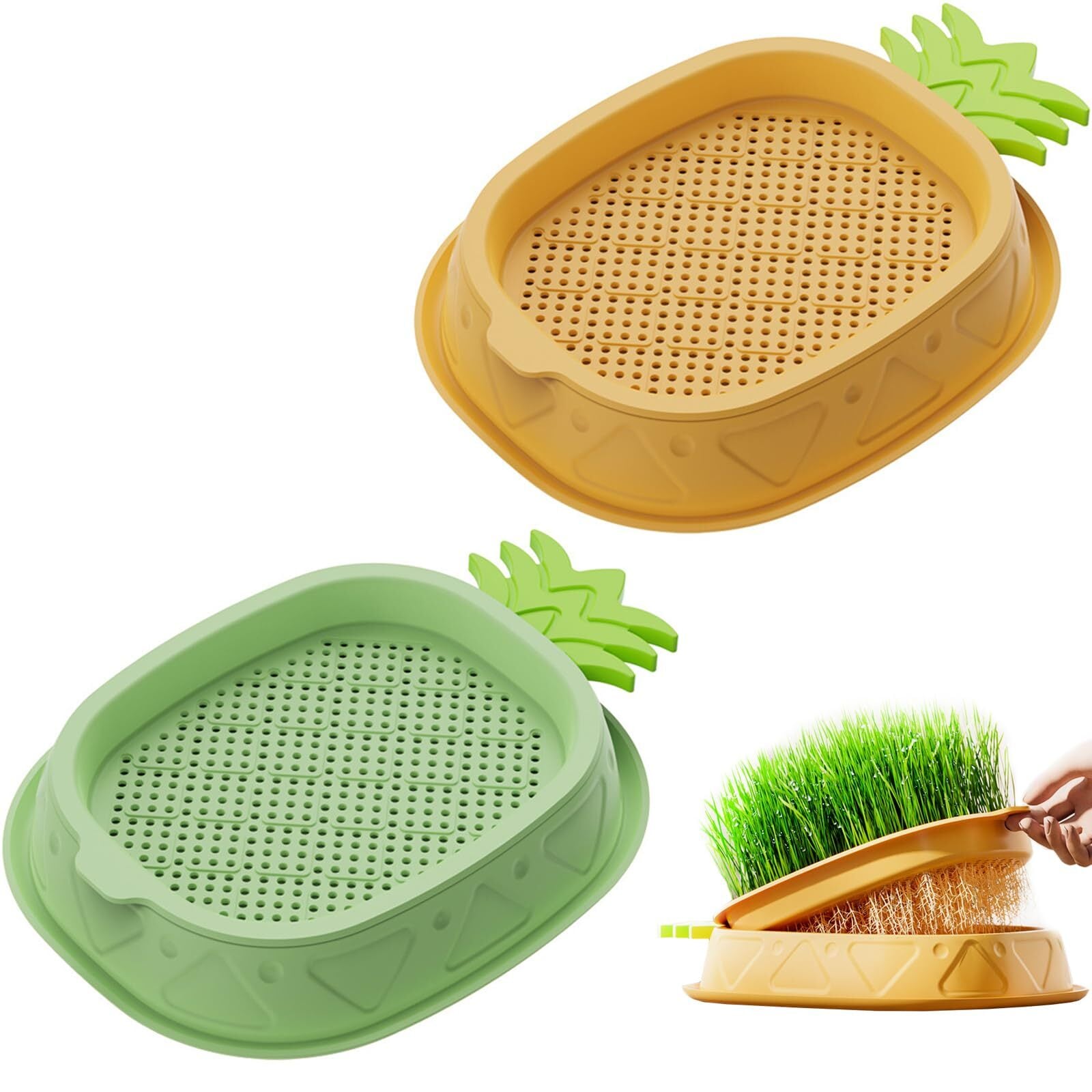 【二重水耕栽培設計】:この猫草プランターは土壌を必要とせずに栽培でき、独立した猫草メッシュ層と水盤で、水をしたり、猫草を刈り取ったりする時の操作をより便利にします。