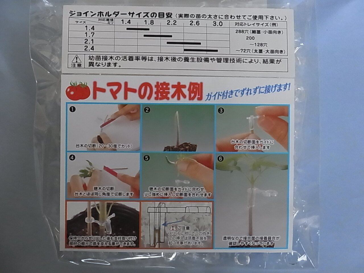 トマト・ナス・ピーマン等の合わせ接ぎ木用。軟質ポリオレフィン樹脂。茎保持穴部内径:2.1mm。茎保持部長さ:11.0mm。