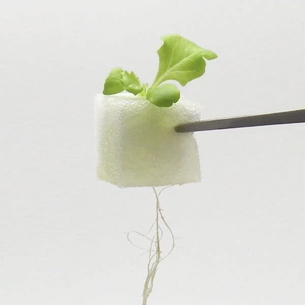 5・育った苗はウレタン培地ごと取り出して、プランターや畑、水耕栽培器に移植して育てます。