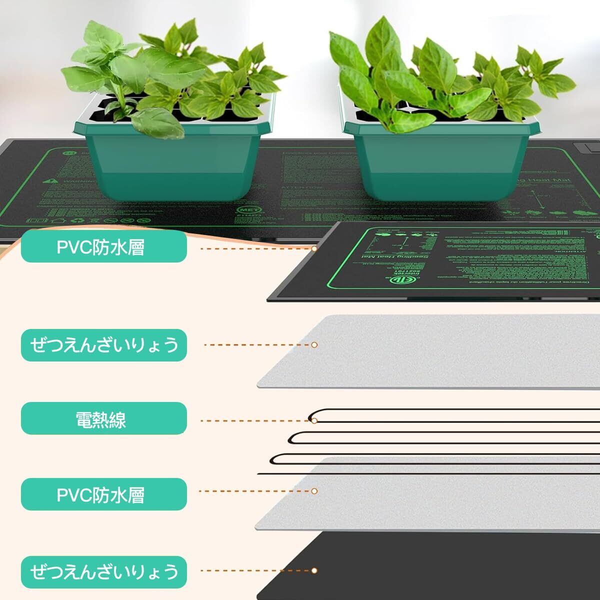 2個入 園芸発芽マット ヒートマット 植物加 熱用 ヒーターマット 室内栽培 保温マット 防水 園芸用ヒーター 育苗器 温室 ヒーター 横53cm×縦25.5cm (2)