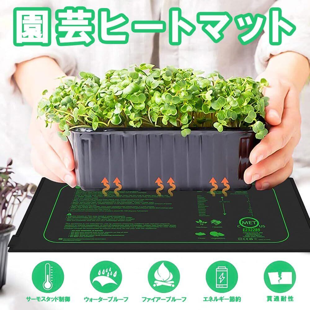 【寒さから植物を守る育苗マット】 昼夜の温度差が大きく、気温が不安定な場所に便利。 野菜や植物の花の種の成長を改善するために一定の温度を提供します。 【優れた耐久性&使いやすい】 熱伝導フィルムを包む柔軟なPVCの多重層でできており、外側の層は内部の発熱体を保護するために密閉されていますので、耐摩耗性と耐久性に優れています。 IP67 防水設計で、表面は掃除が簡単で安全にこすり洗いできます。 苗付け用ヒートマットを平らに置き、プラグをソケットに差し込み、苗スタートトレイをヒートマットに置いて電源を入れるだけで加熱が始まります。