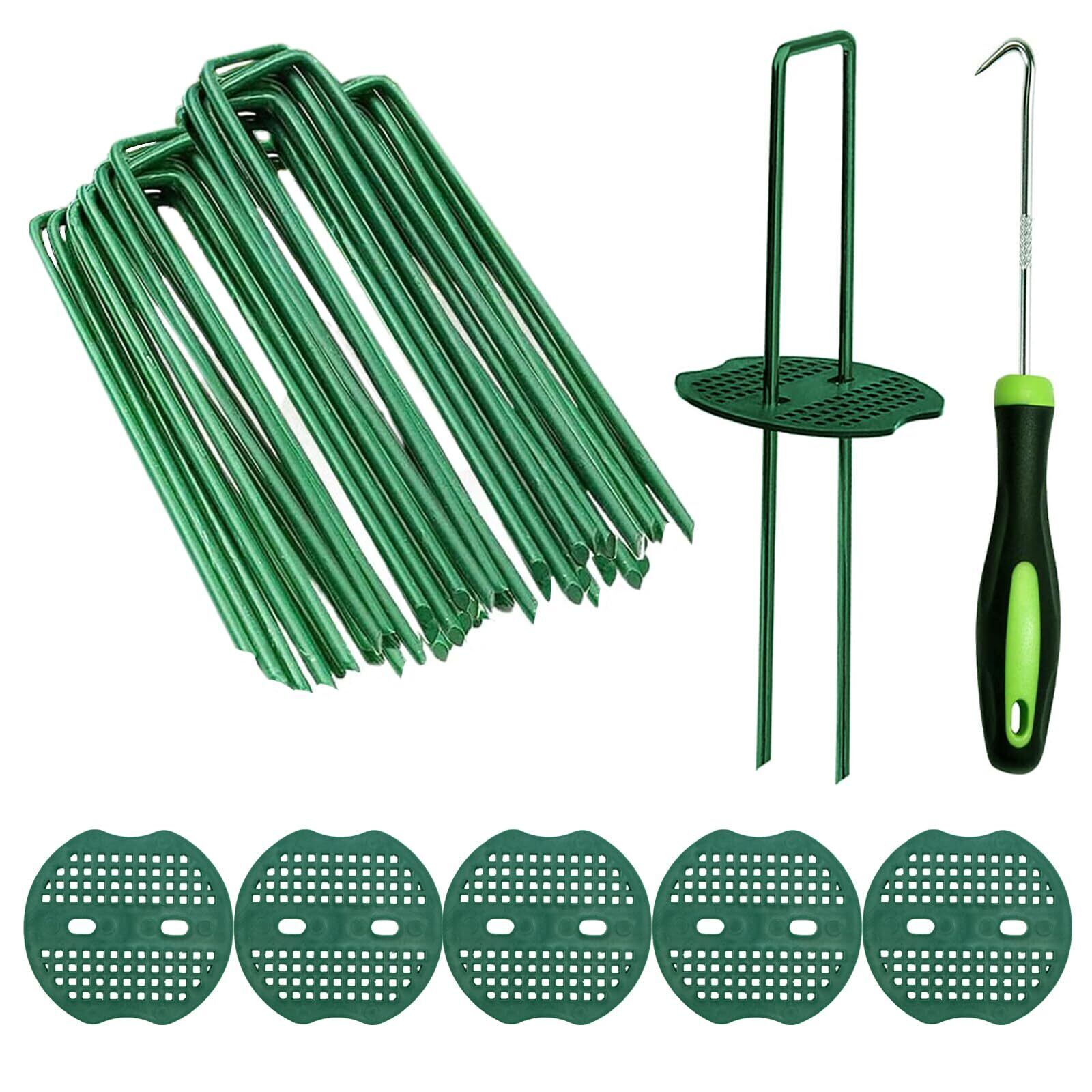 【パッケージ内容】 Uピン杭のサイズは15cmx3cmで、直径は約3.2mm、数量は100本。緑丸100本と抜きフック1本も含まれており、お客様にとって最適な製品内容です。