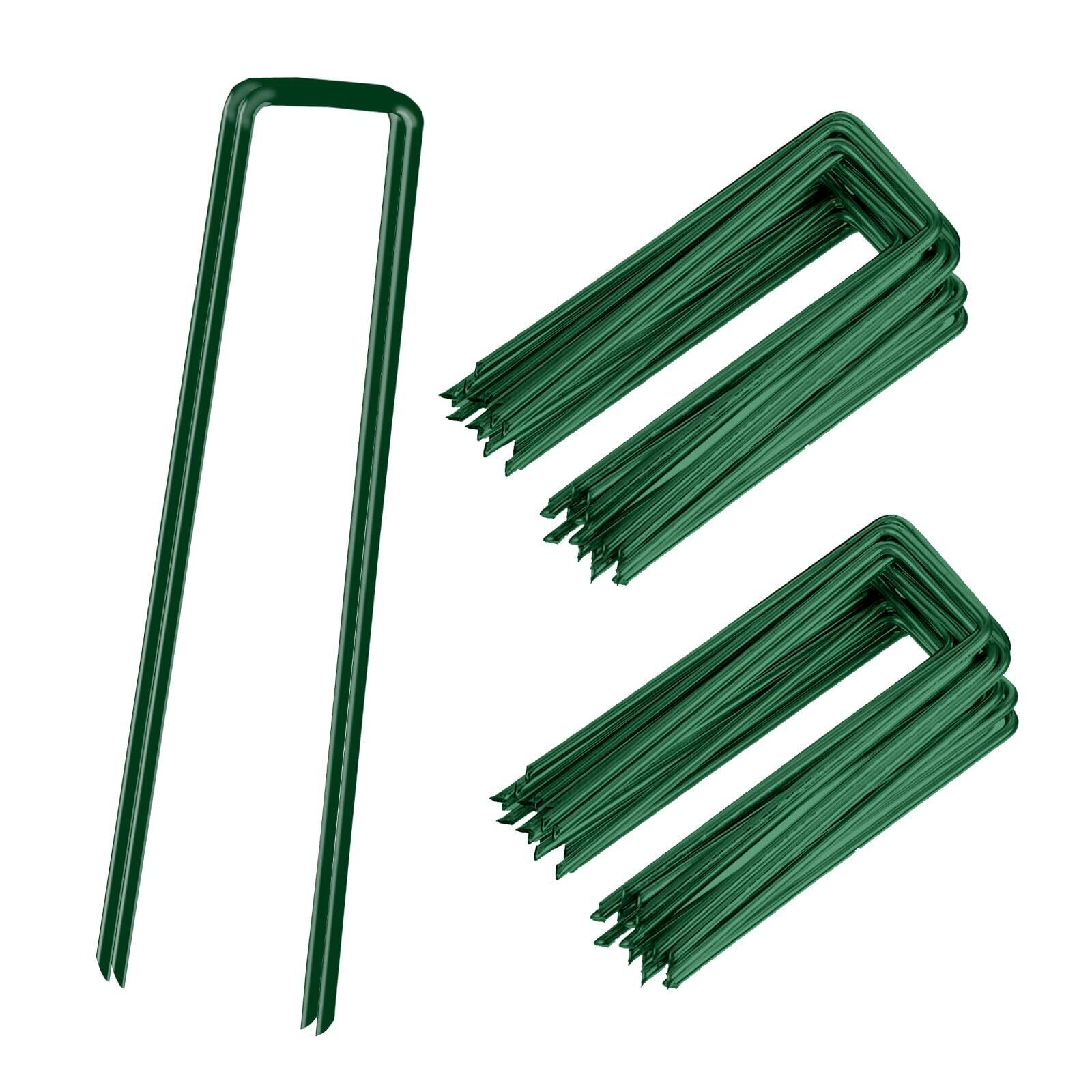 [RsBarter] Uピン杭 固定ピン 50本 長さ15cm ぼうそうシートピン 防錆 防蝕 高耐久性 剣先タイプ 抜けない固定力 防草シート/防虫ネット/水道管に適合 雑草シートピン 人工芝押さえピン (グリーン50本入り, 15X3X0.3)