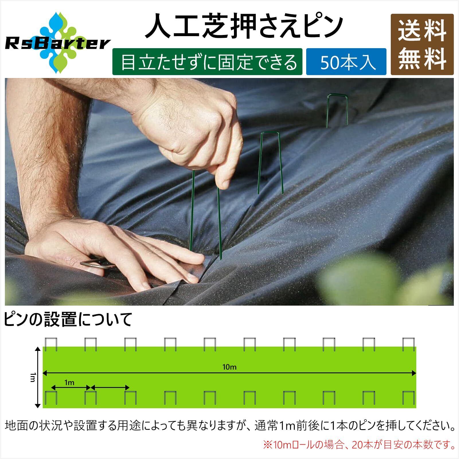 [RsBarter] Uピン杭 固定ピン 50本 長さ15cm ぼうそうシートピン 防錆 防蝕 高耐久性 剣先タイプ 抜けない固定力 防草シート/防虫ネット/水道管に適合 雑草シートピン 人工芝押さえピン (グリーン50本入り, 15X3X0.3) | KSショップ