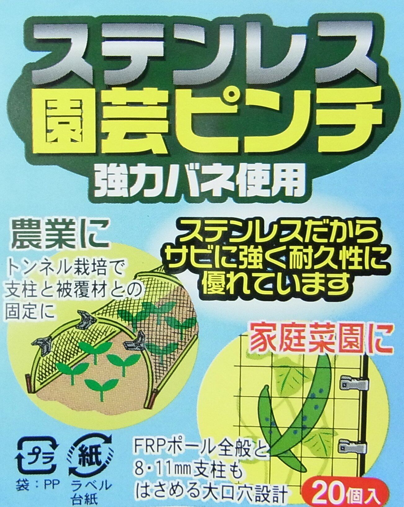 ハナオカ ステンレス園芸ピンチ 20個入 φ8~11mm用